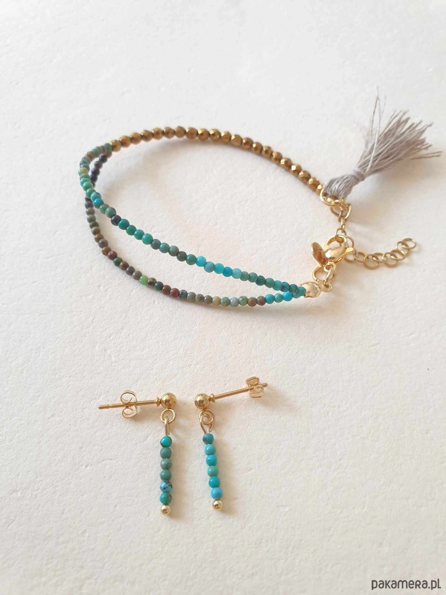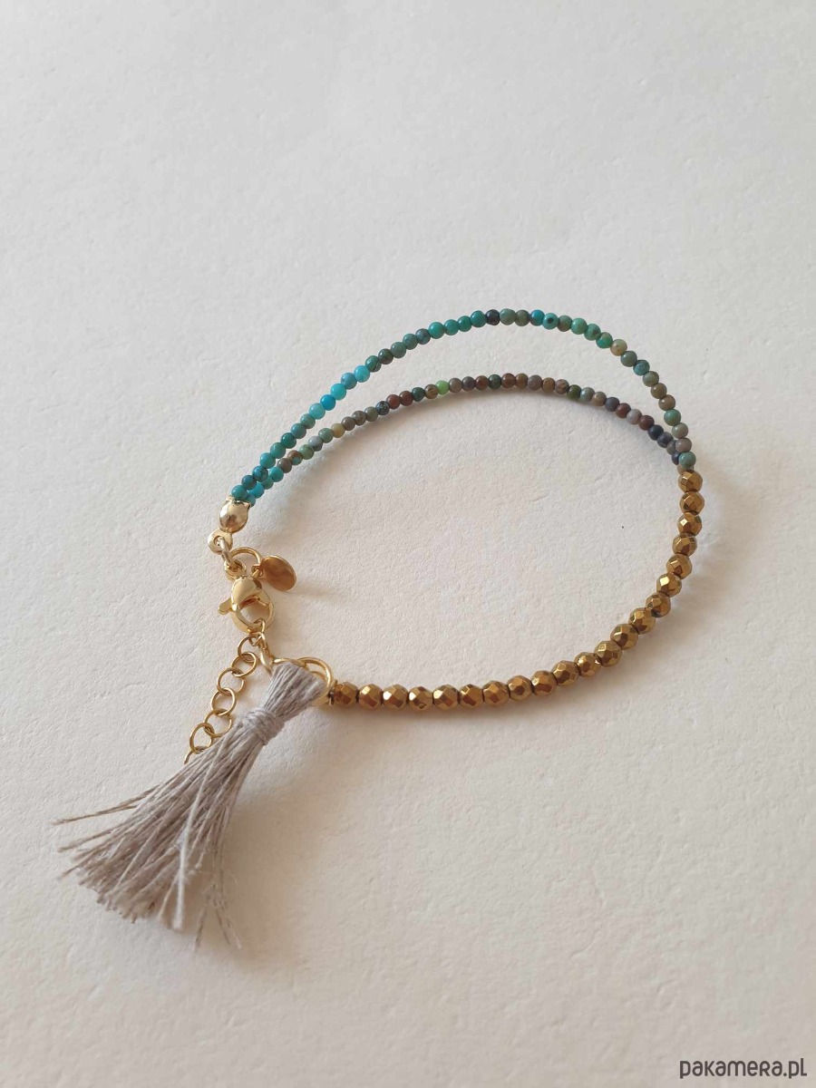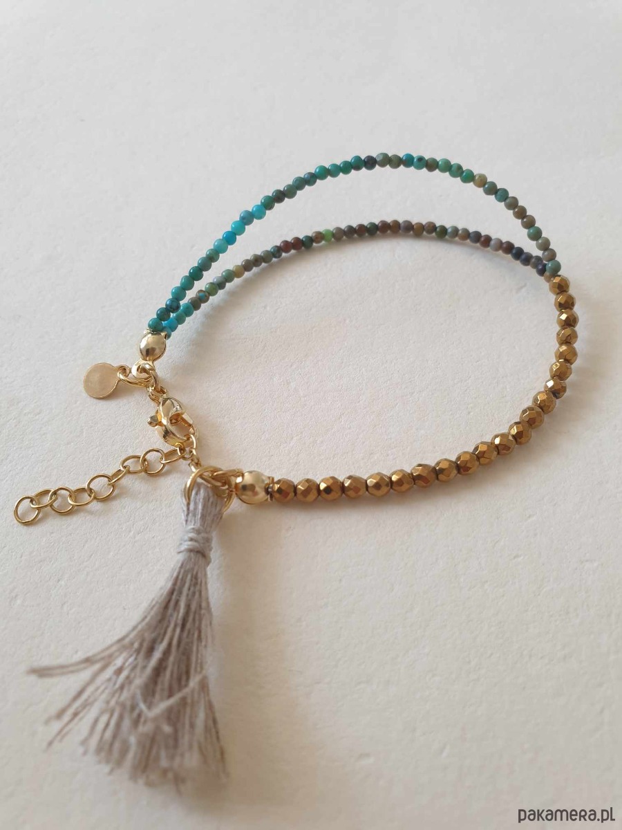 W tej - fasetowany turkus, hematyt złoty, lniany chwost