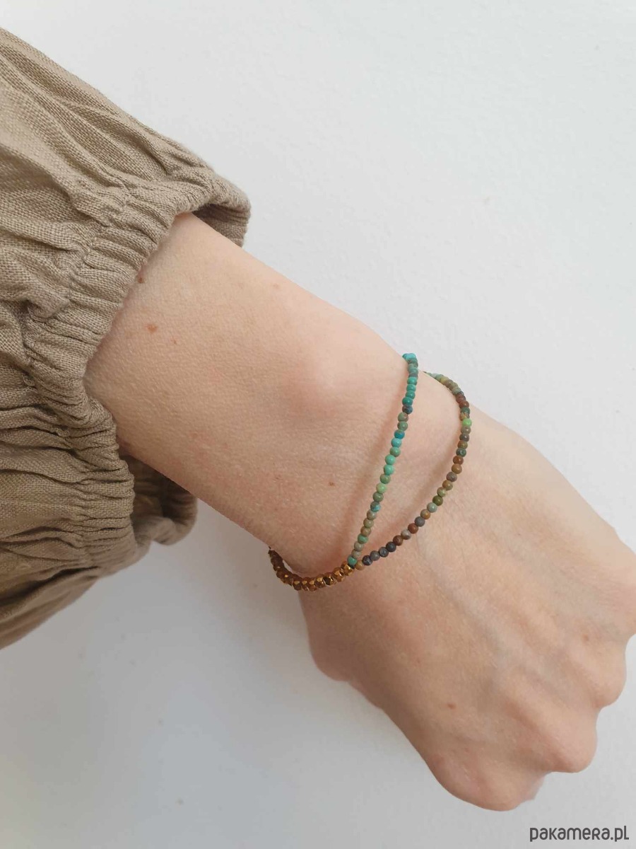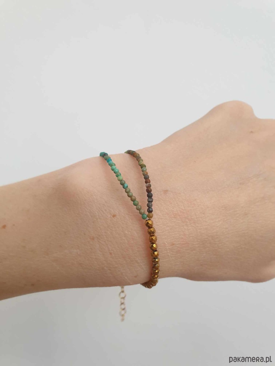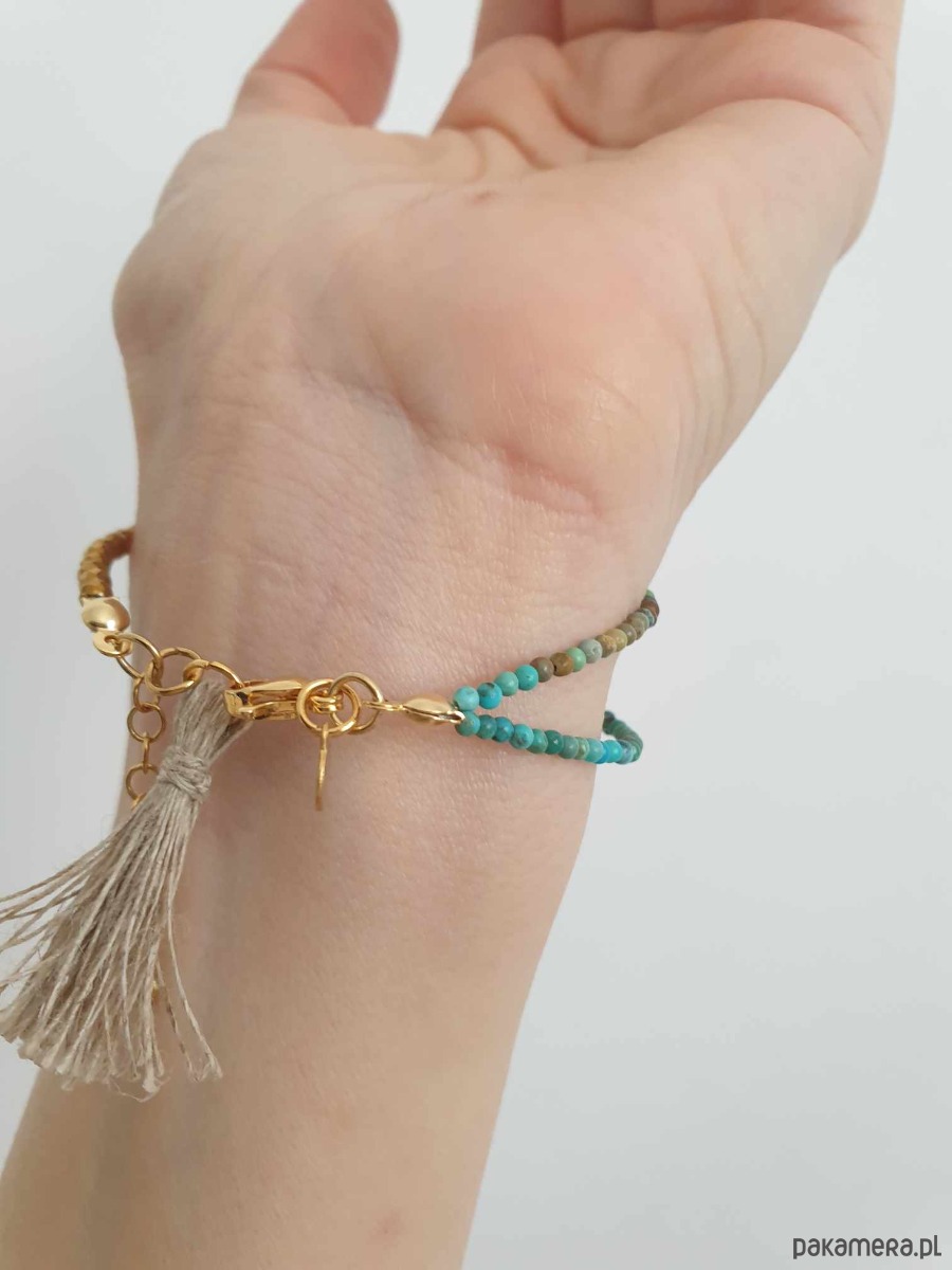 W tej - fasetowany turkus, hematyt złoty, lniany chwost