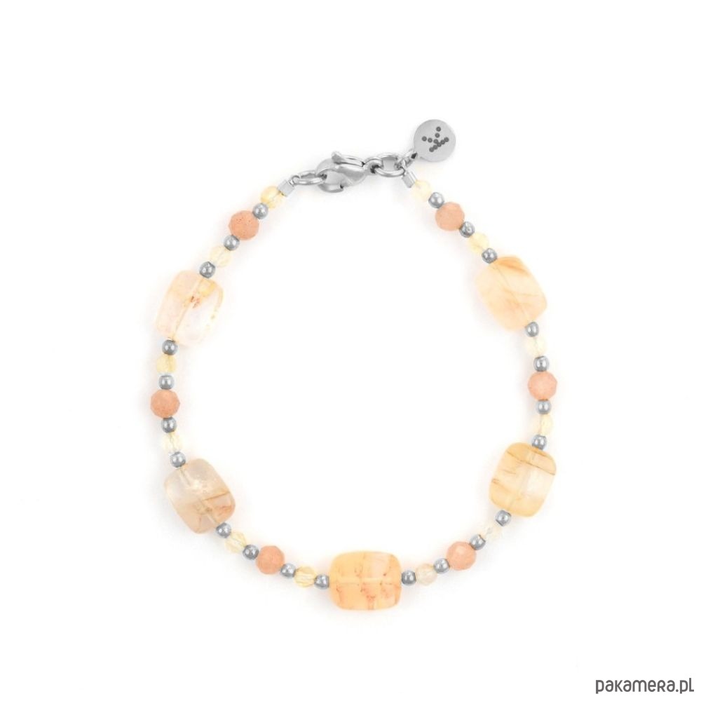Elegancka bransoletka z Kamieni Hematytu, Kamienia Słonecznego, Cytrynu to doskonałe połączenie siły i pozytywnej energii. Starannie rozmieszczone kamienie tworzą wyrafinowaną całość, a Pastylki Cytrynu przyciągają wzrok swoim blaskiem.