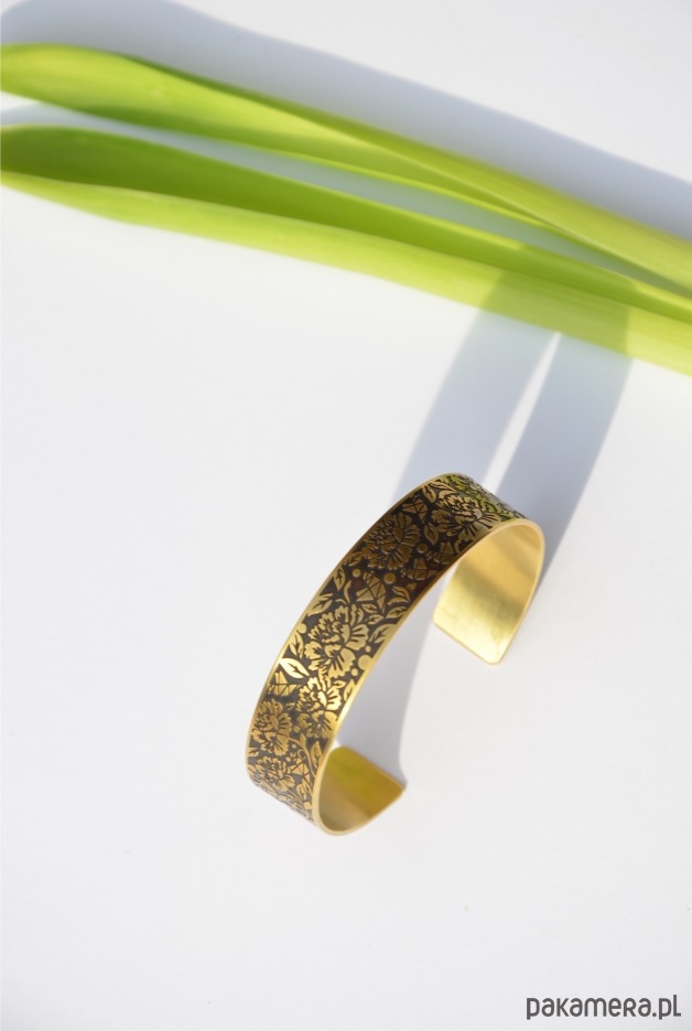 Nowa bransoletka ma kolor jasno złoty, wraz z upływem czasu mosiądz nabiera szlachetnej barwy starego złota.