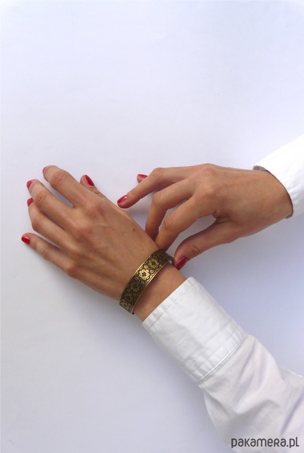 Nowa bransoletka ma kolor jasno złoty, wraz z upływem czasu mosiądz nabiera szlachetnej barwy starego złota.