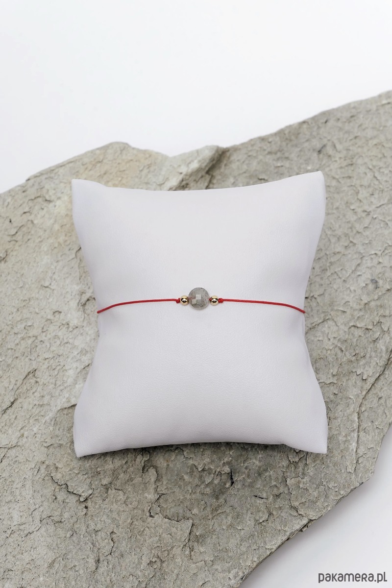 Ręcznie wykonana, prosta i subtelna bransoletka z labradorytem na czerwonym sznurku nylonowym.