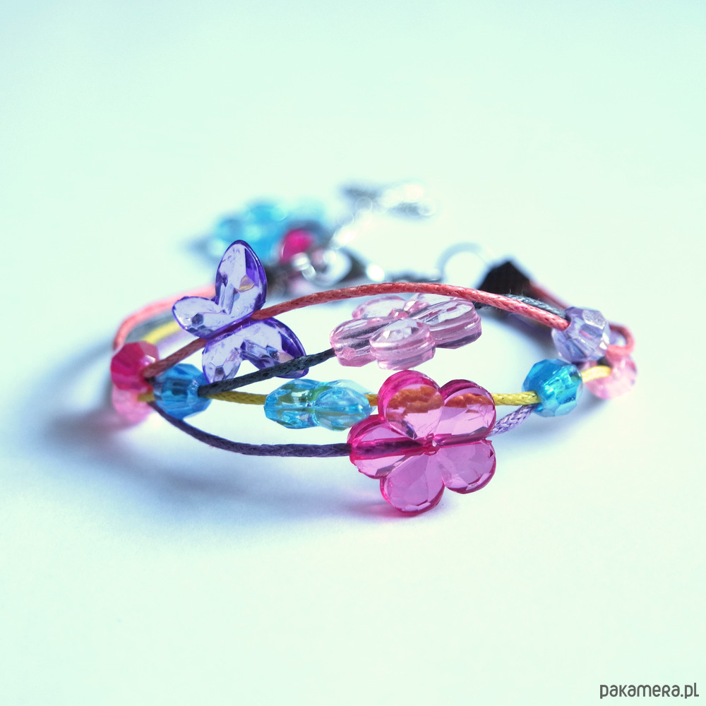 Bransoletka - Motylki, kwiaty 1 - sznureczki - dla dzieci