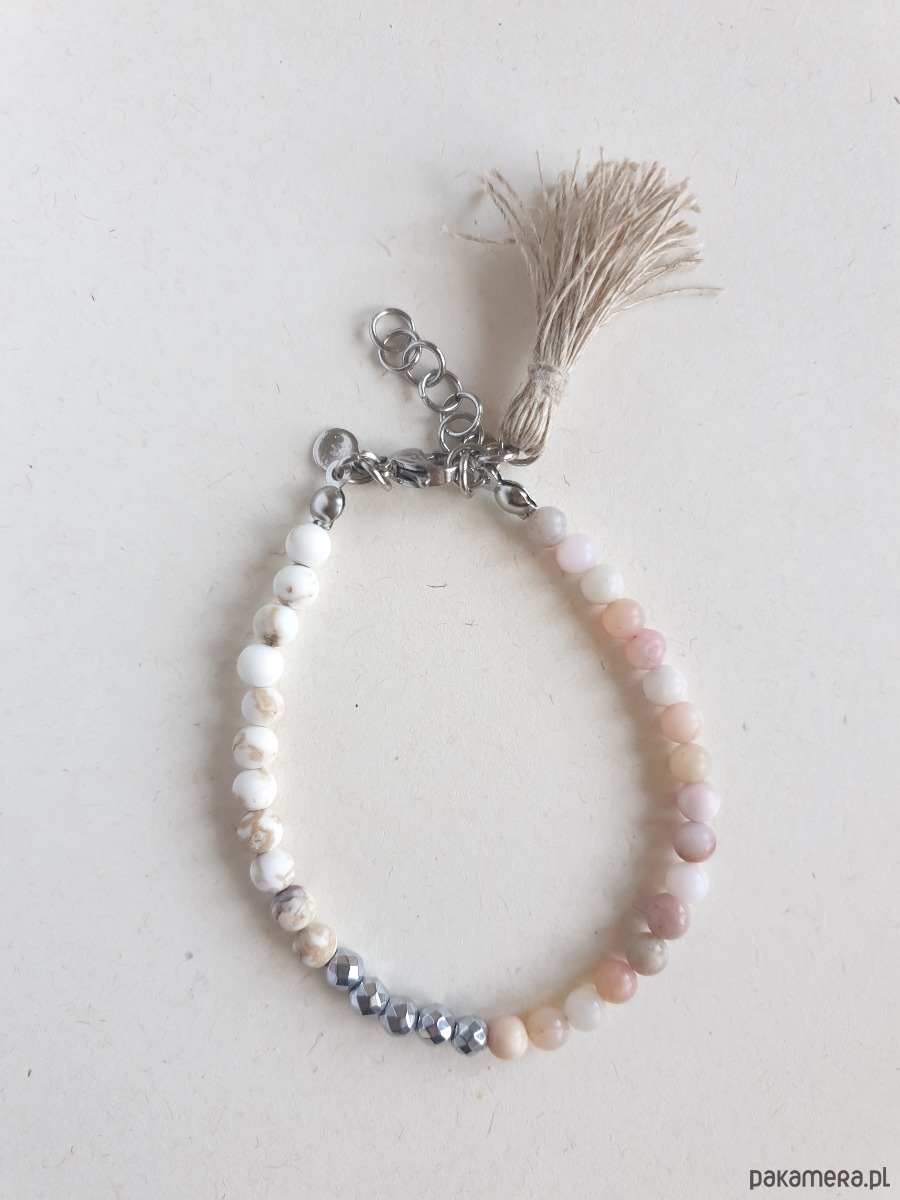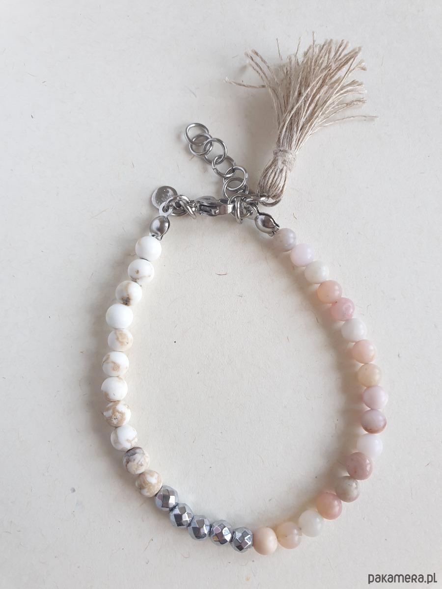 Bransoletka MULTI opal indyjski różowy, howlit, lniany chwost