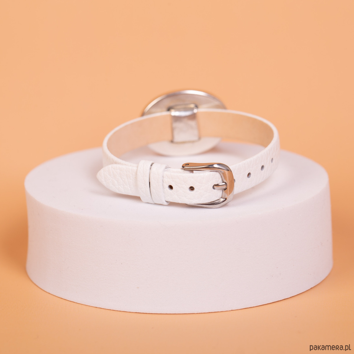 Forma i charakter: Bransoleta łączy nowoczesny minimalizm z efektownym akcentem kolorystycznym. Głęboka biel paska pięknie kontrastuje z nasyconym odcieniem bursztynu, a metalowe elementy w kolorze srebrnym podkreślają elegancki styl całości. Dzięki klasycznej konstrukcji paska zegarkowego bransoletka łatwo dopasowuje się do nadgarstka i jest wygodna w codziennym noszeniu.