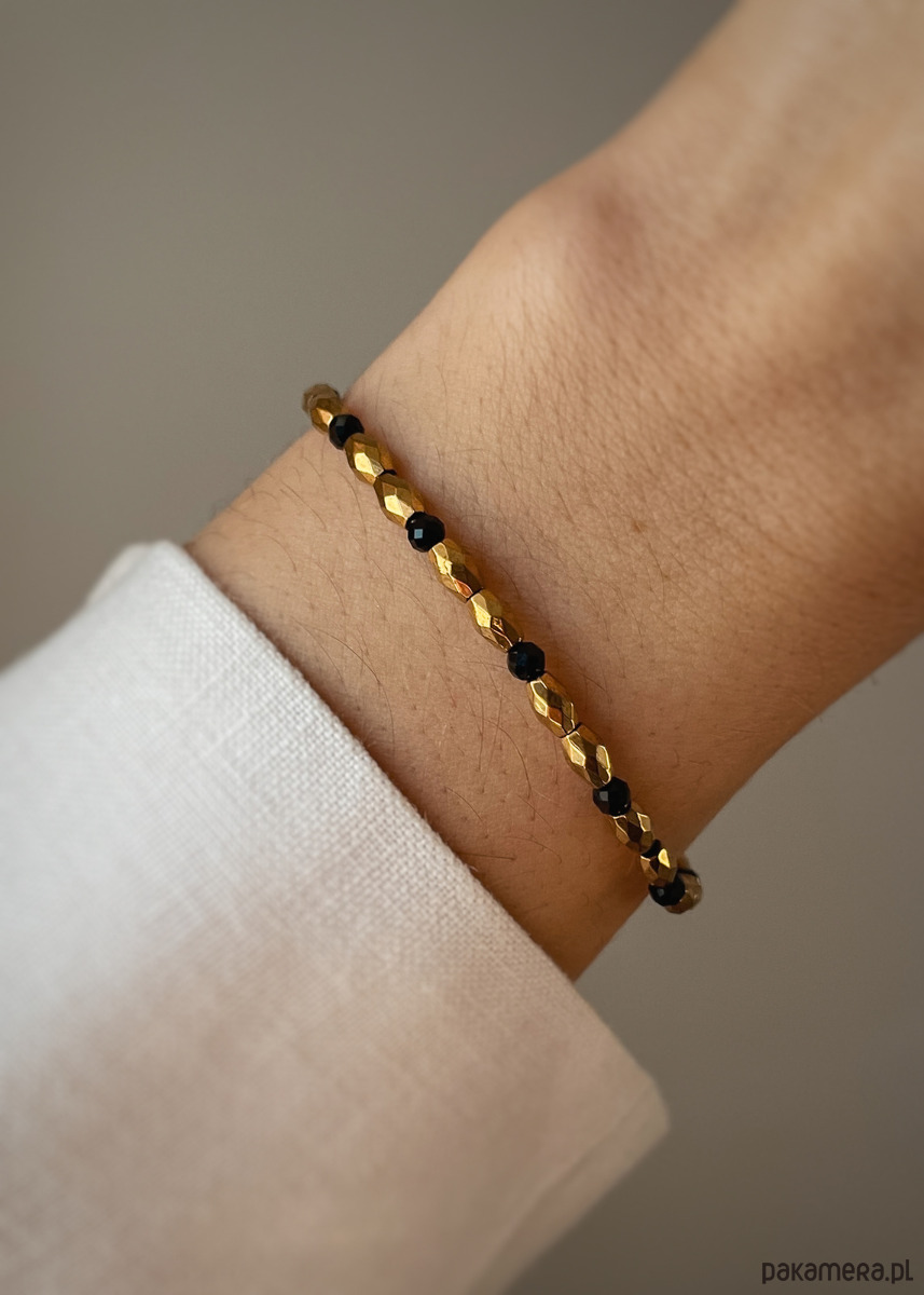 Wielkość kamieni: czarny turmalin 3 mm oraz hematyt 3x5 mm