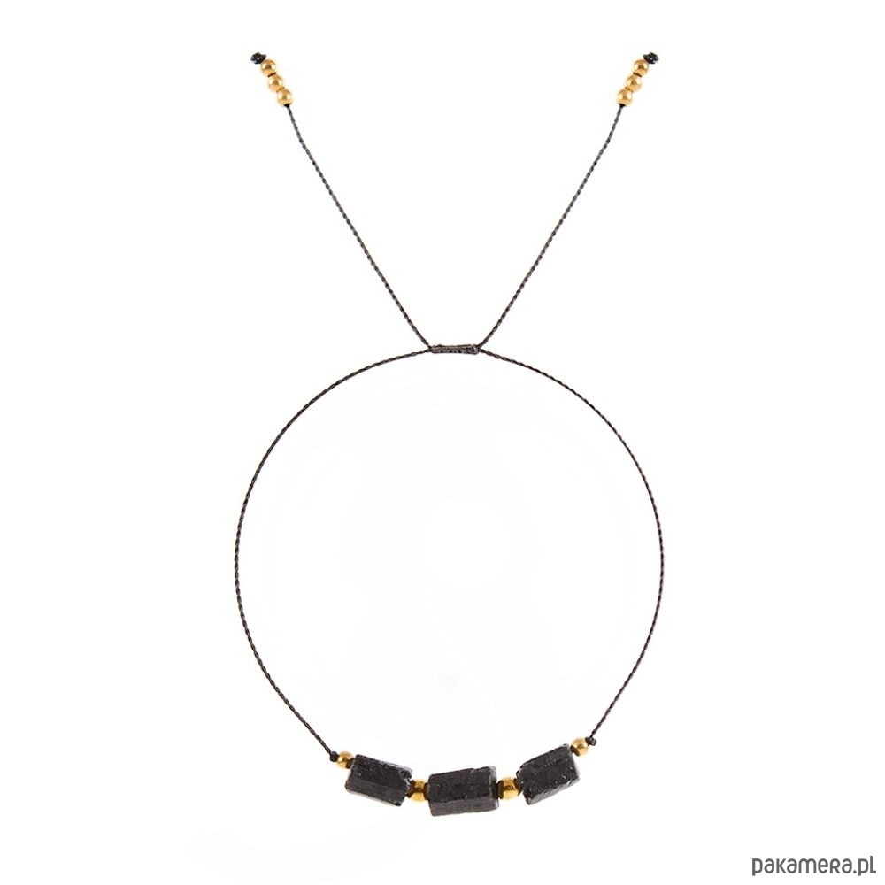 Bransoletka z trzema surowymi bryłami czarnego turmalinu na jedwabnej nici to połączenie minimalizmu, mocy natury i subtelnej elegancji. Delikatna czarna nić symbolizuje równowagę, a surowe kamienie i złote akcenty nadają całości wyjątkowego charakteru.