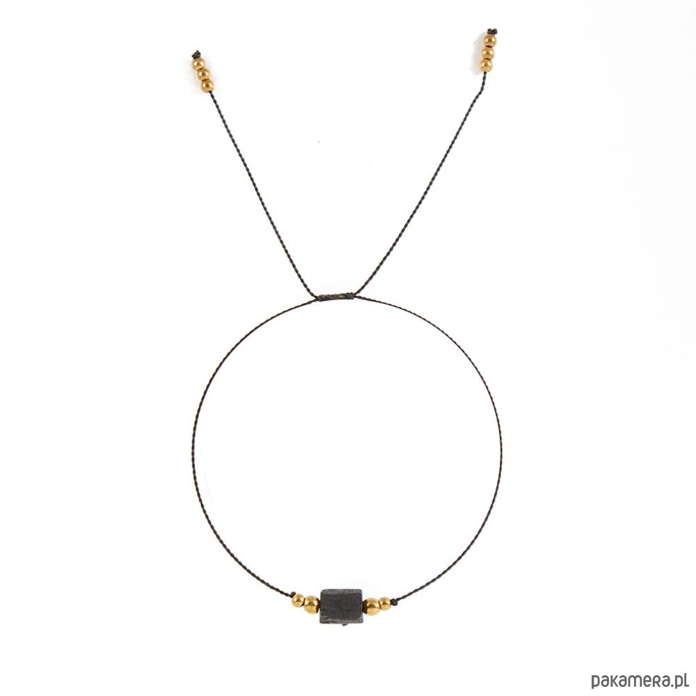 Bransoletka na jedwabnej nici z mini surową bryłą - Wersja Pozłacana
