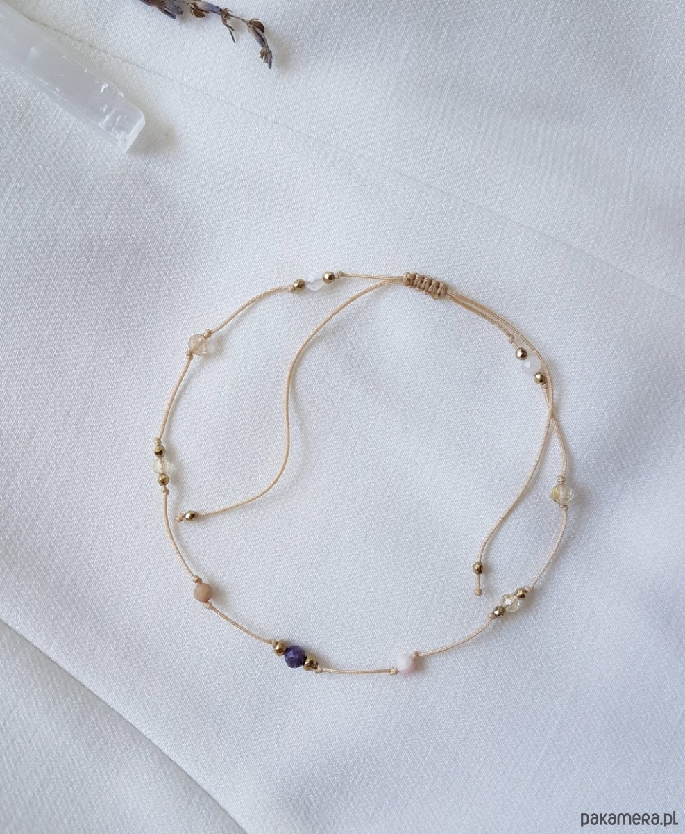 Bransoletka wykonana jest z wysokiej jakości jubilerskiego sznurka a wielkość kamieni to 3,5-4,5mm.