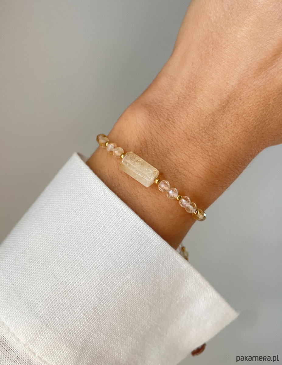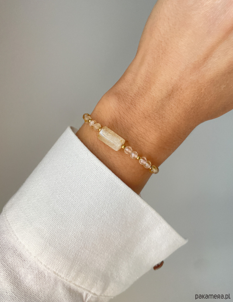 Ta bransoletka to słoneczny i energetyczny dodatek, symbolizujący obfitość i pozytywną energię. Piękny, ciepły żółty cytryn w połączeniu ze szlachetnym blaskiem złota tworzy wyrazistą i radosną kompozycję.