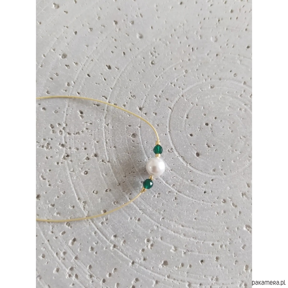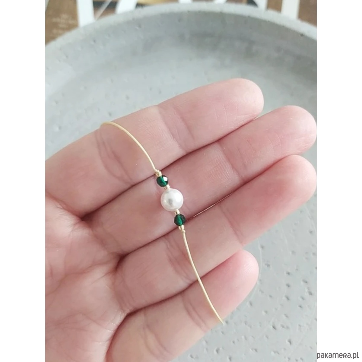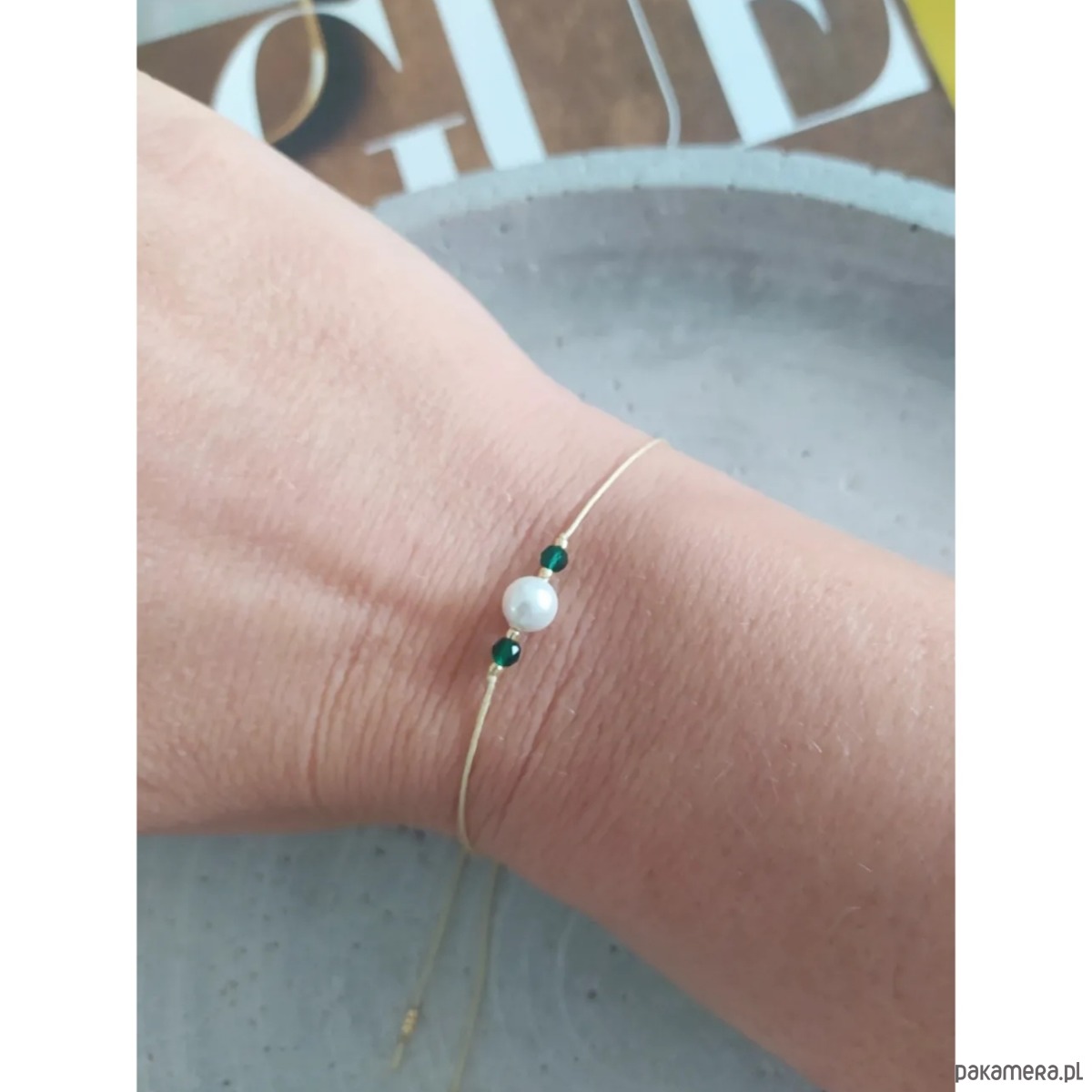 Wykonana z wytrzymałej nici jubilerskiej w cielistym kolorze oraz kamieni: Szmaragd klarowany (kulka fasetowana) i Perła Majorka w odcieniu naturalnym. Uzupełnieniem są robniutkie galvanizowane koraliki ze szkła japońskiego w kolorze złota. Piękna bransoletka dla nowoczesnej kobiety lubiącej subtelną biżuterię.