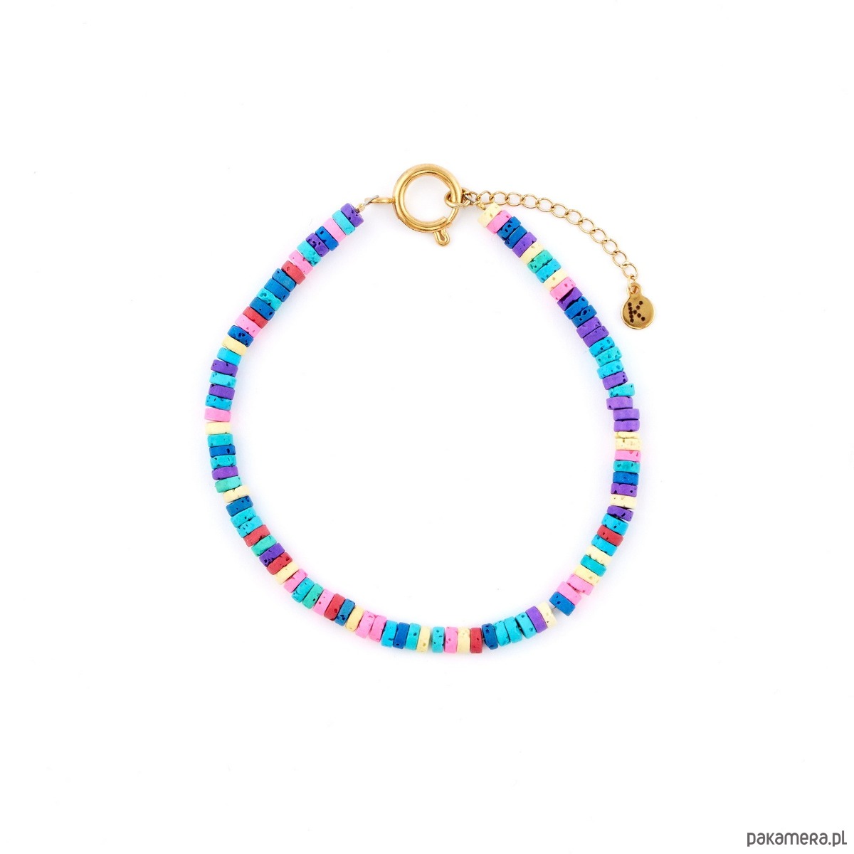 Hit lata! Bransoletka wykonana jest z naturalnej lawy wulkanicznej dobarwianej kwarcem.