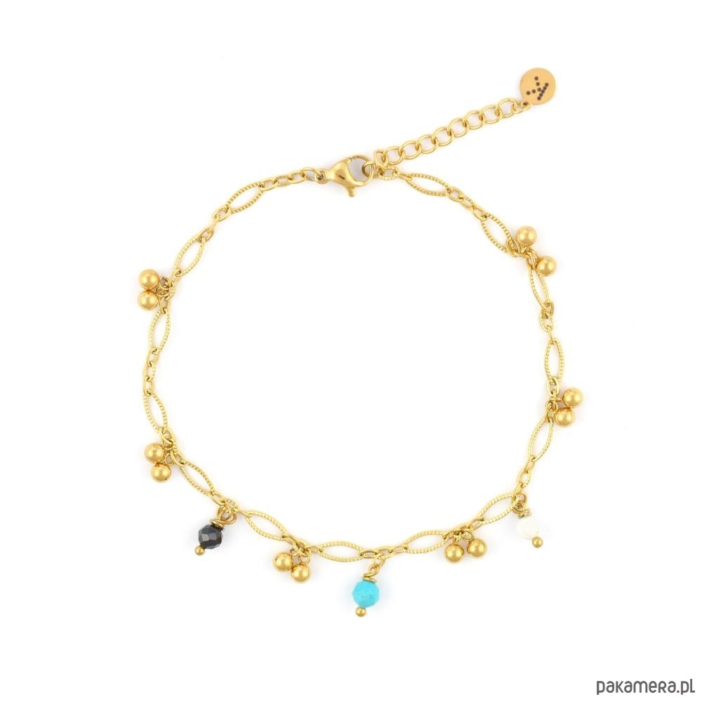 Poznaj najnowszą odsłonę bransoletki na nogę. Tym razem z kamieniem Turkus, Kamień Księżycowy, Czarny Turmalin oraz zawieszkami w formie mini kuleczek. Niezwykle kobieca kompozycja