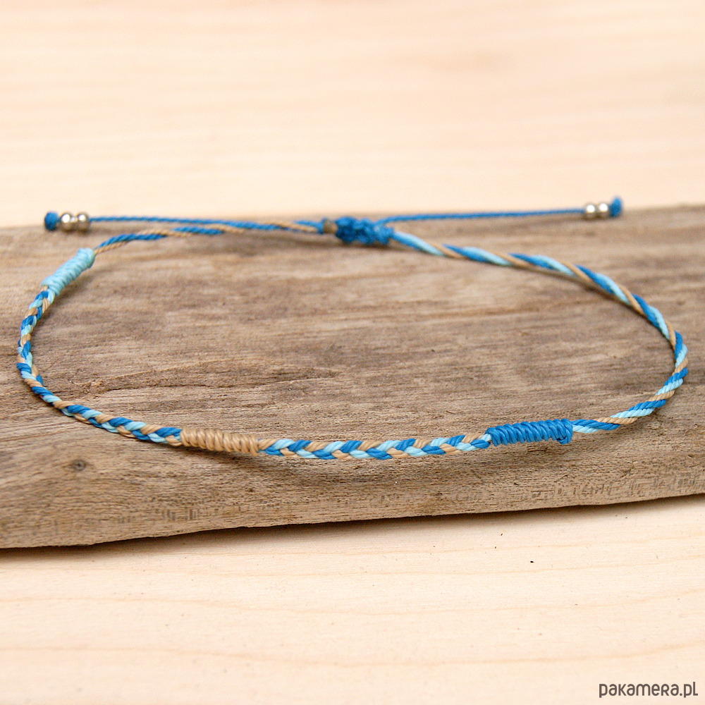 Delikatna Bransoletka na nogę zrobiona ręcznie z bardzo wysokiej jakości sznurka któremu nie szkodzi woda.