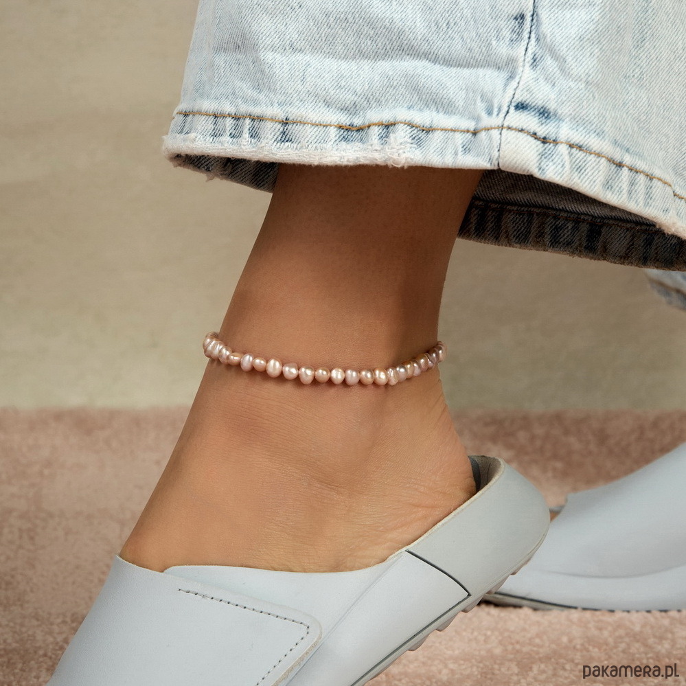 Bransoletka na nogę z pereł naturalnych (barokowych), słodkowodnych oraz srebra: