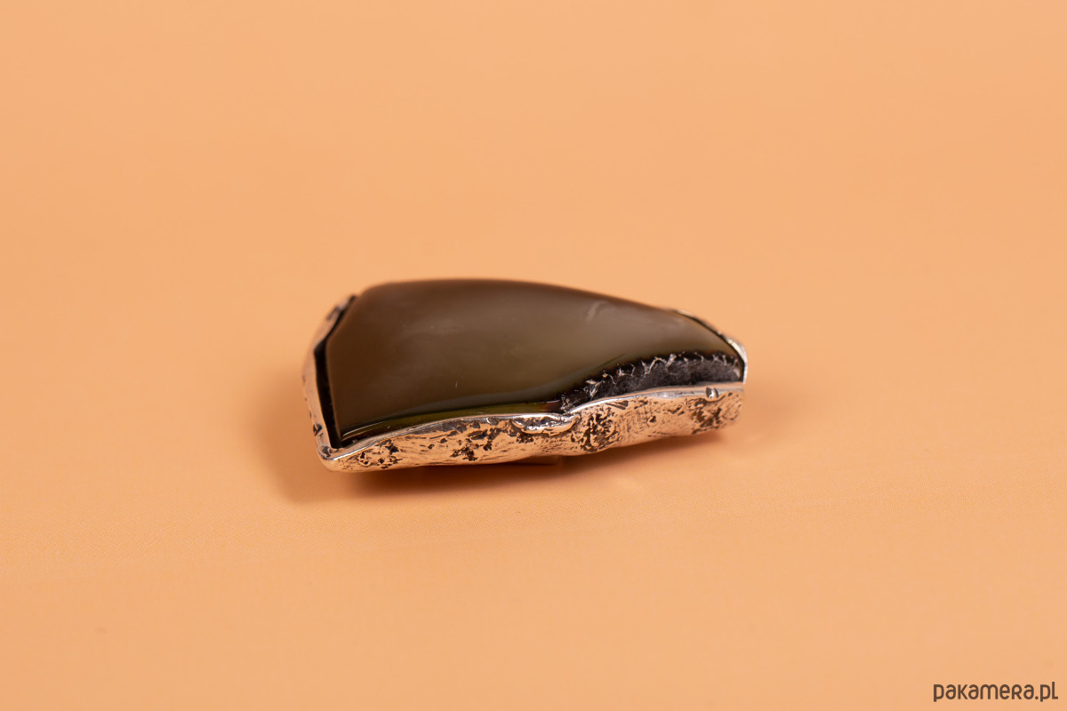 Waga i odczucie: Masa srebrnej części z bursztynem (15 g) świadczy o solidności rzemieślniczej pracy. Bursztyn o wysokości 0,7 cm nadaje bransolecie wyraźnej objętości, sprawiając, że jest ona widocznym i bardzo nowoczesnym akcentem. Skórzany pasek jest miękki i komfortowy, a naturalne ciepło bursztynu sprawia, że biżuteria jest niezwykle przyjemna w codziennym noszeniu.