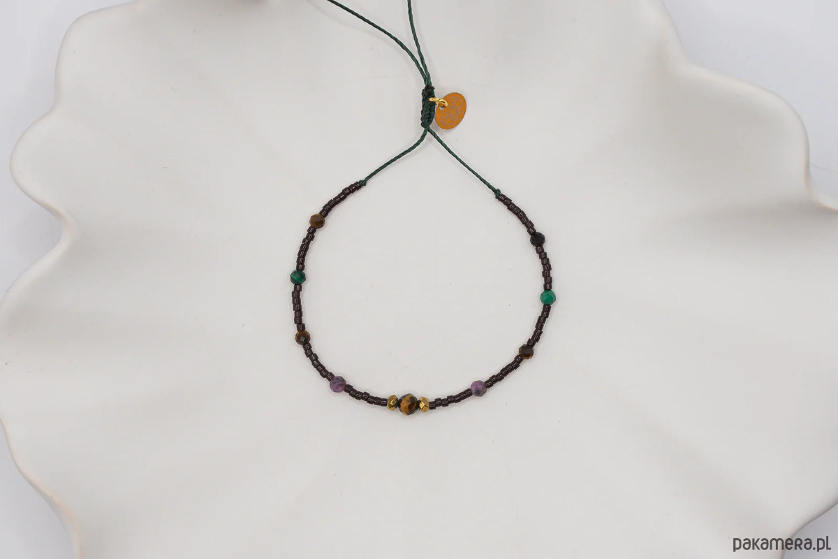 Rozmiar bransoletki jest uniwersalny dzięki zapięciu typu makrama. Dopasujesz ją idealnie do swojego nadgarstka.