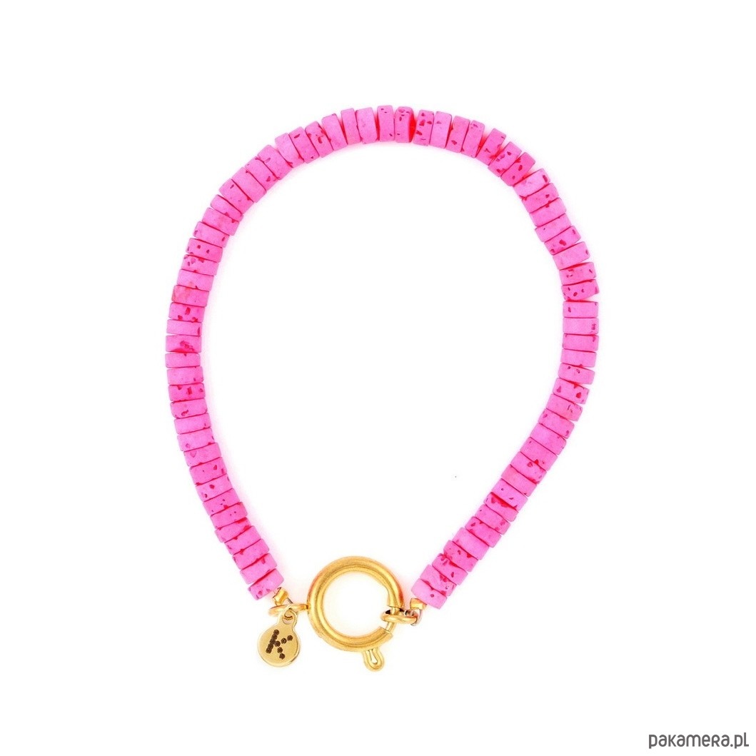 Bransoletka wykonana jest z naturalnej lawy wulkanicznej dobarwianej kwarcem.