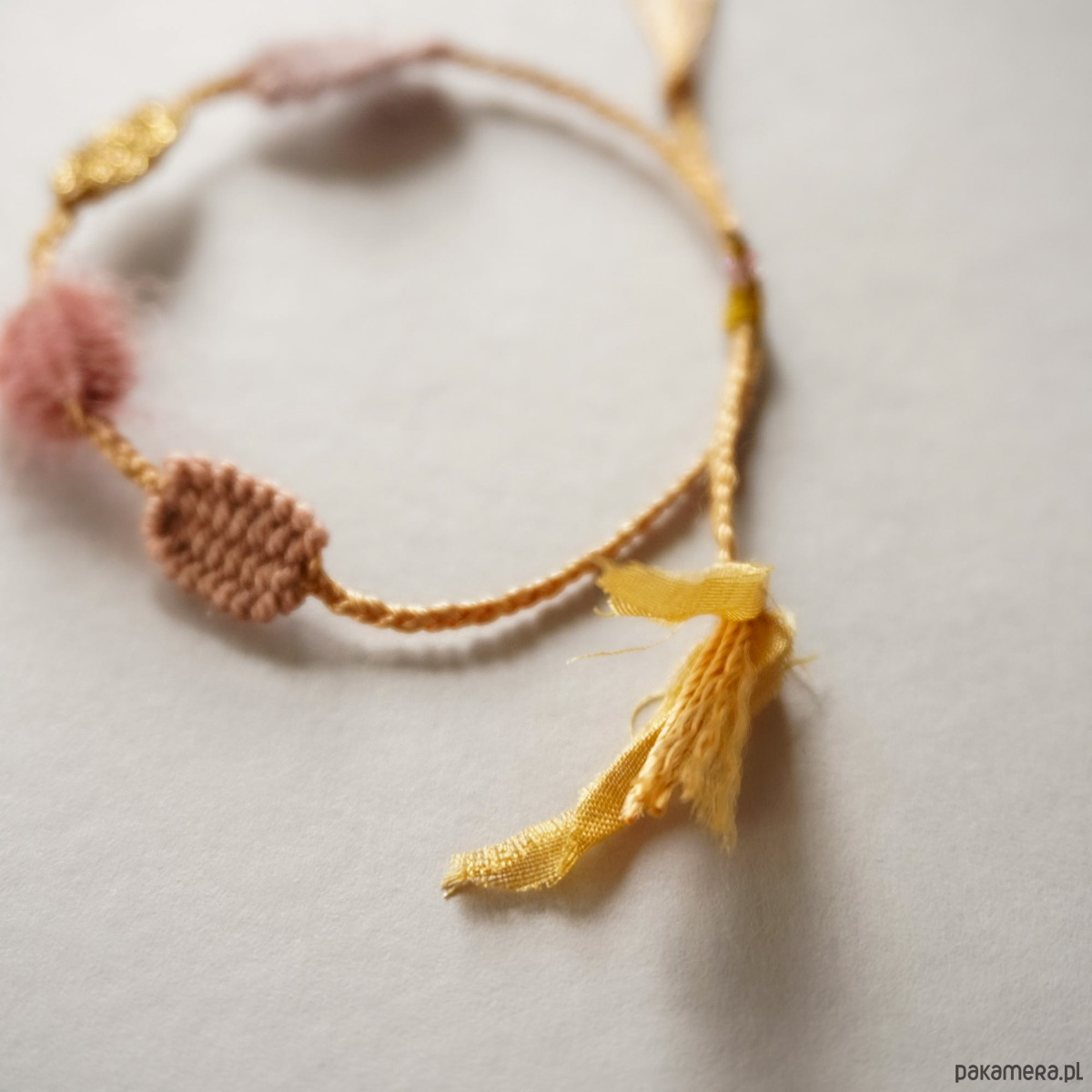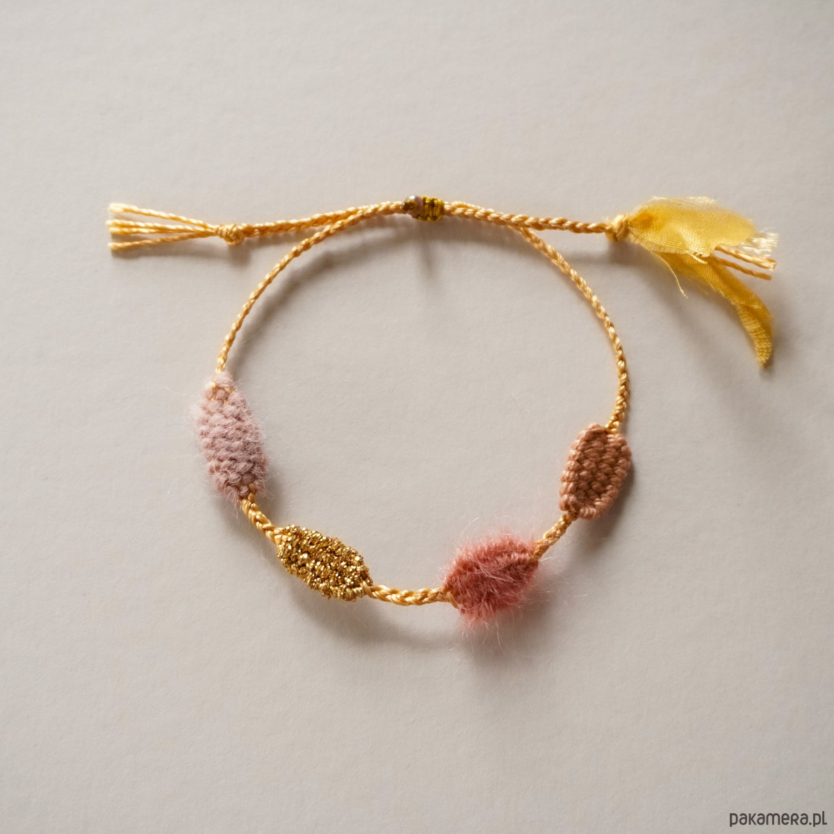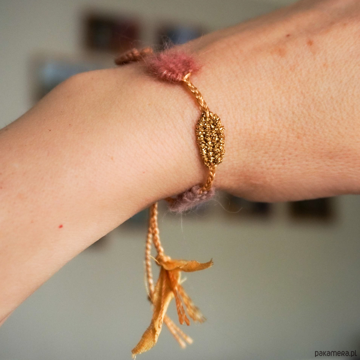 Jest to mój autorski pomysł i został zgłoszony do Urzędu Patentowego. Zapięcie jest makramowe, umożliwia wygodną regulację :). Zapraszam serdecznie :) . Ten model pasuje idealnie do szerokiej 2,5 cm bransoletki różowej z innej mojej oferty. Polecam :)