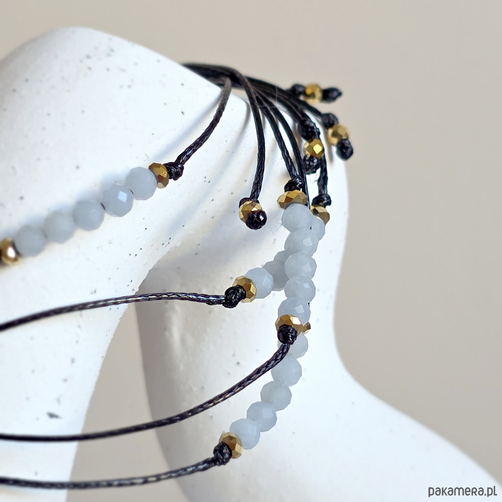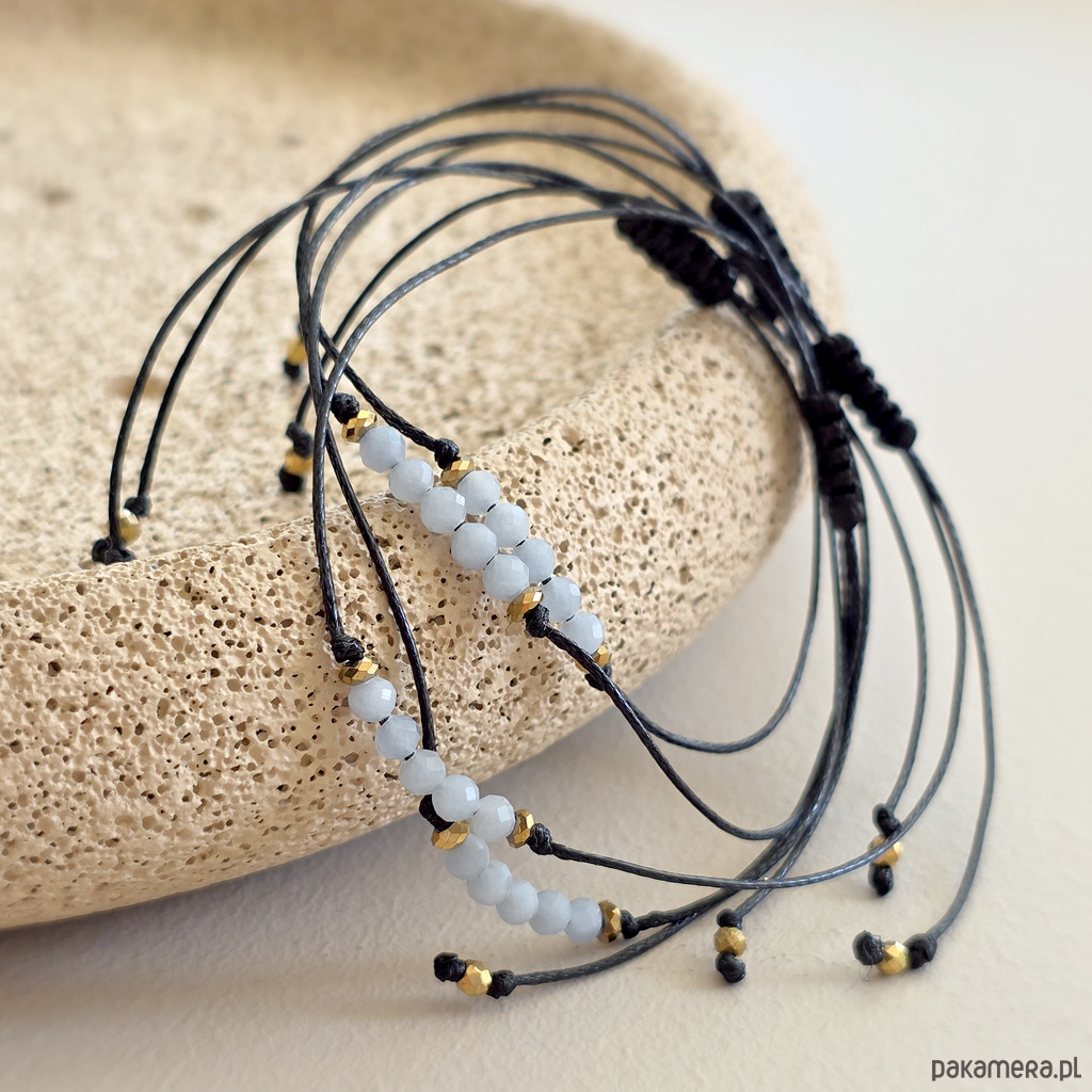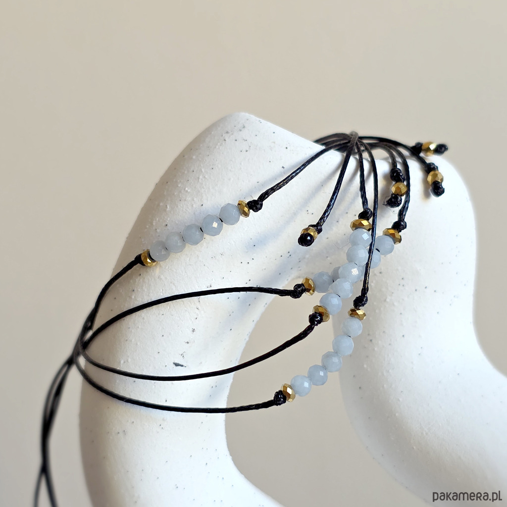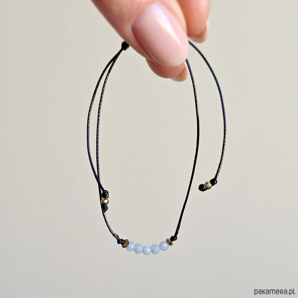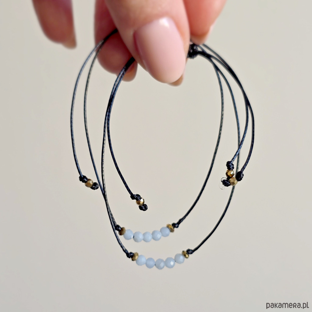 Jasny błękit angelitu pięknie kontrastuje z czarnym sznurkiem, nadając całości elegancki, bardzo dyskretny charakter. Idealna, jeśli lubisz prostotę i biżuterię, która nie dominuje, a delikatnie towarzyszy.