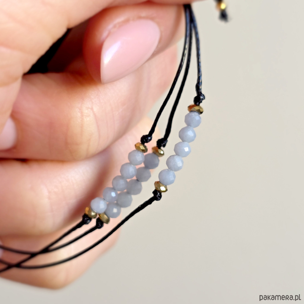 Minimalistyczna, ultra delikatna bransoletka z angelitu i hematytu to subtelny detal, który wnosi spokój i lekkość do codzienności. Tworzy ją zaledwie kilka drobnych kuleczek (3 mm), dzięki czemu jest niemal niewyczuwalna na nadgarstku, a jednocześnie pełna znaczenia.