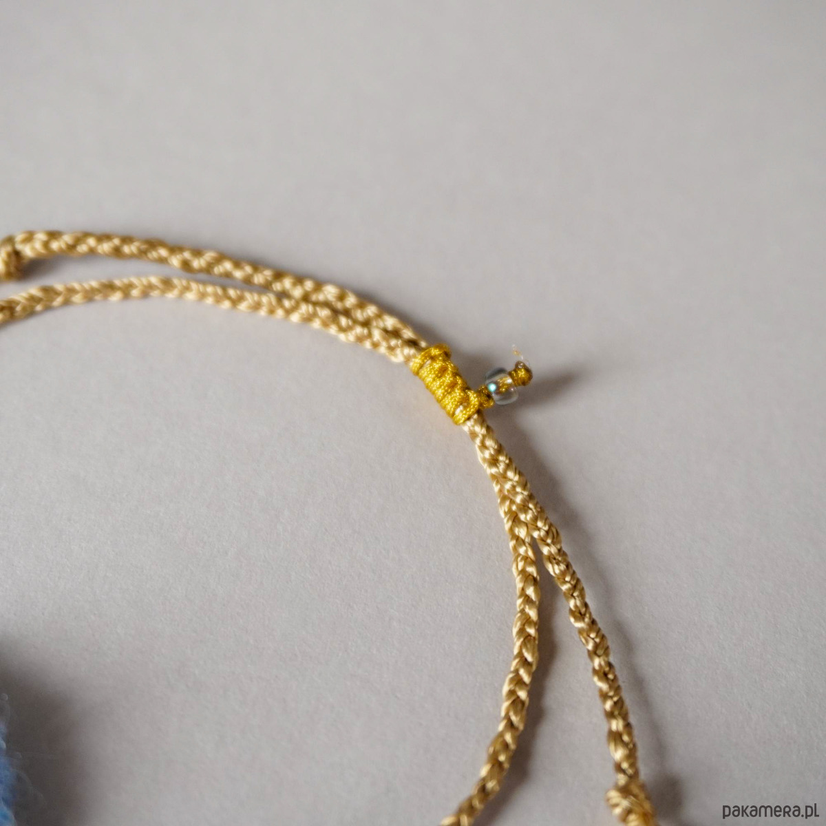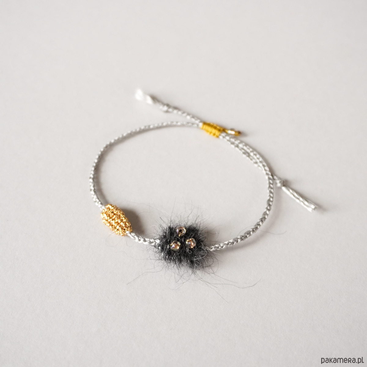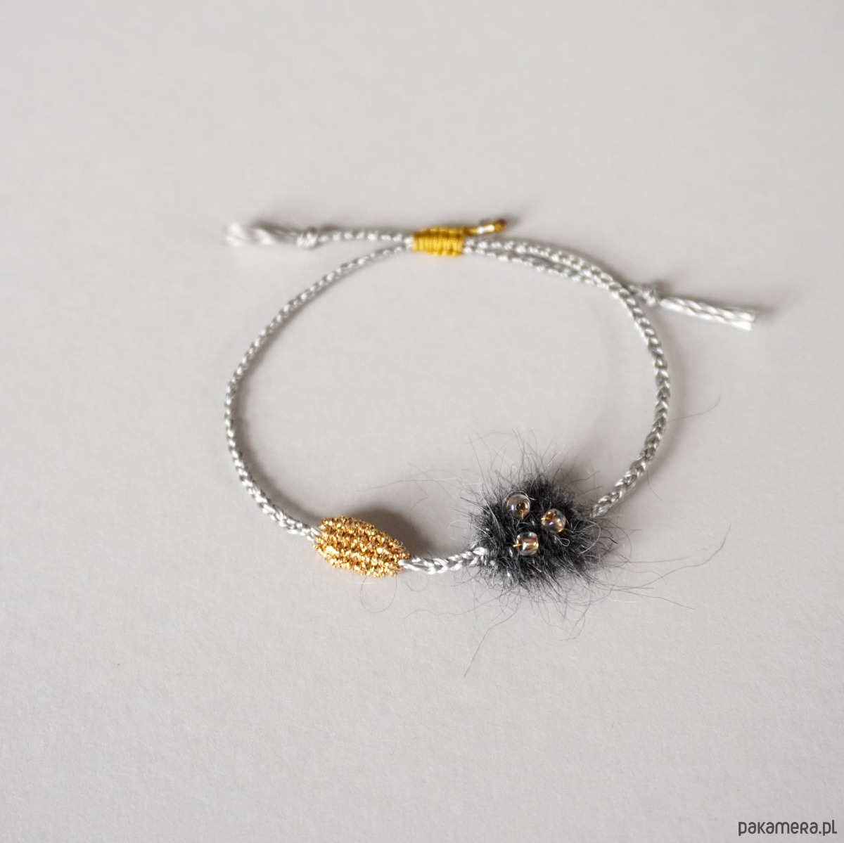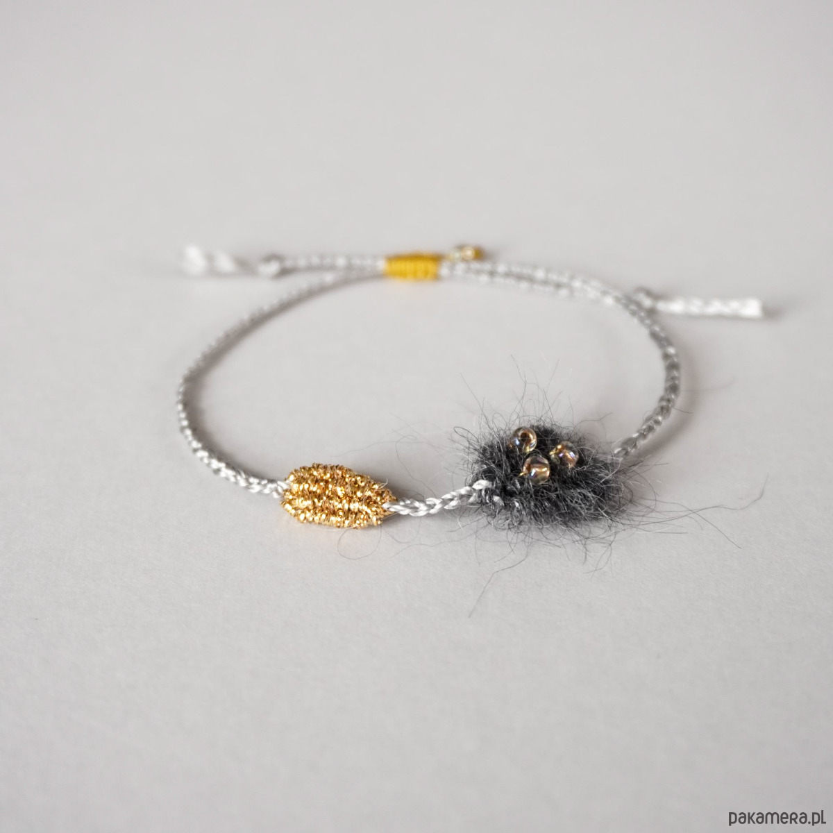 Bransoletka na sznurku z elementami tkanym i koralikami - unikat