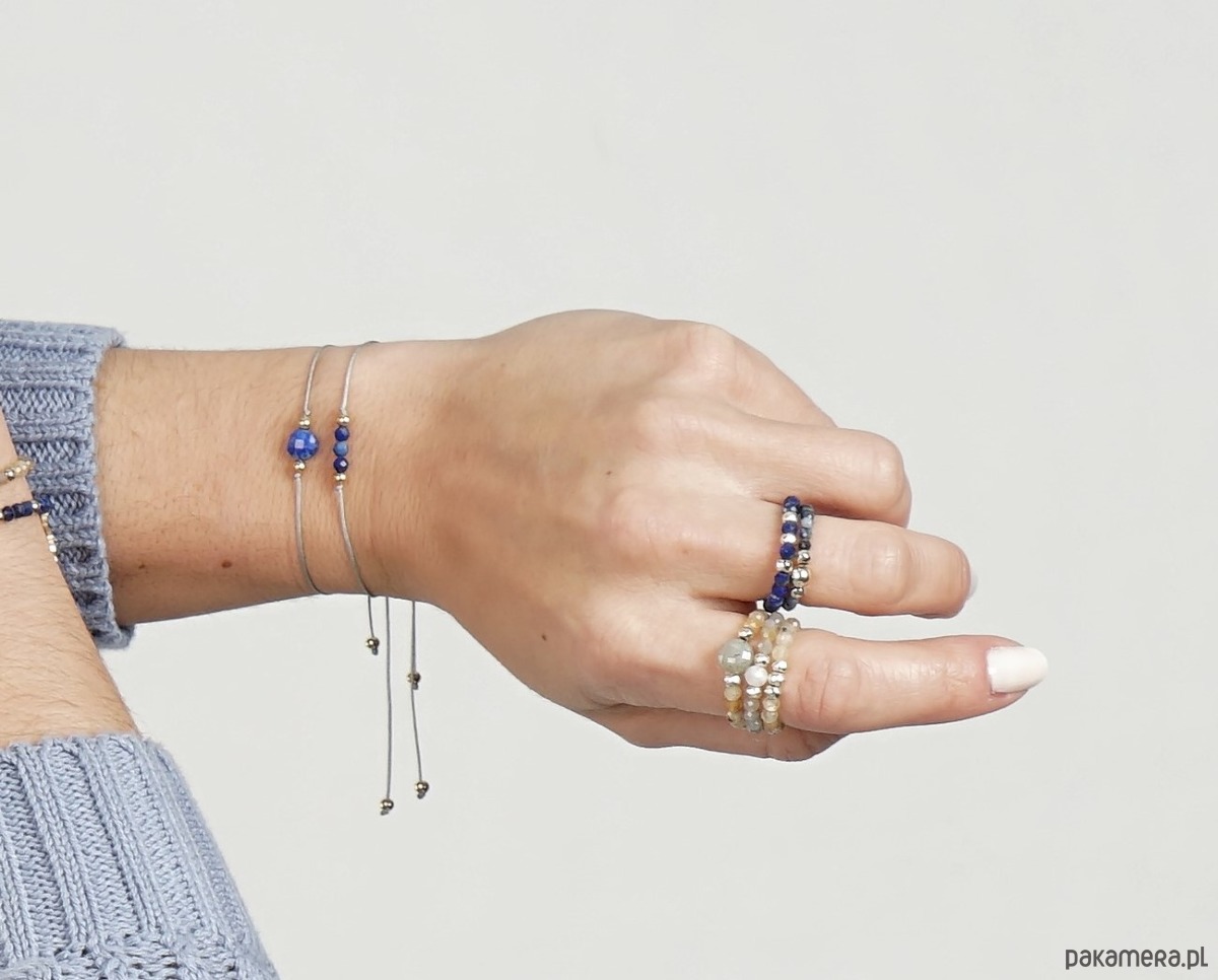 Ręcznie wykonana, prosta i subtelna bransoletka z lapis lazuli na sznurku nylonowym.