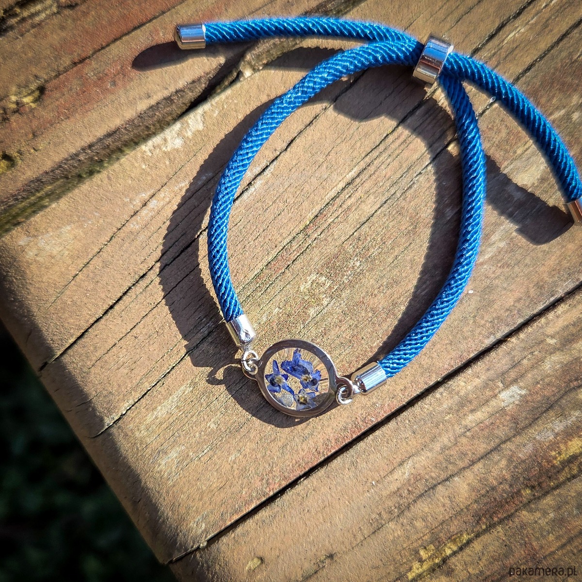 Bransoletka na sznurku z niezapominajkami