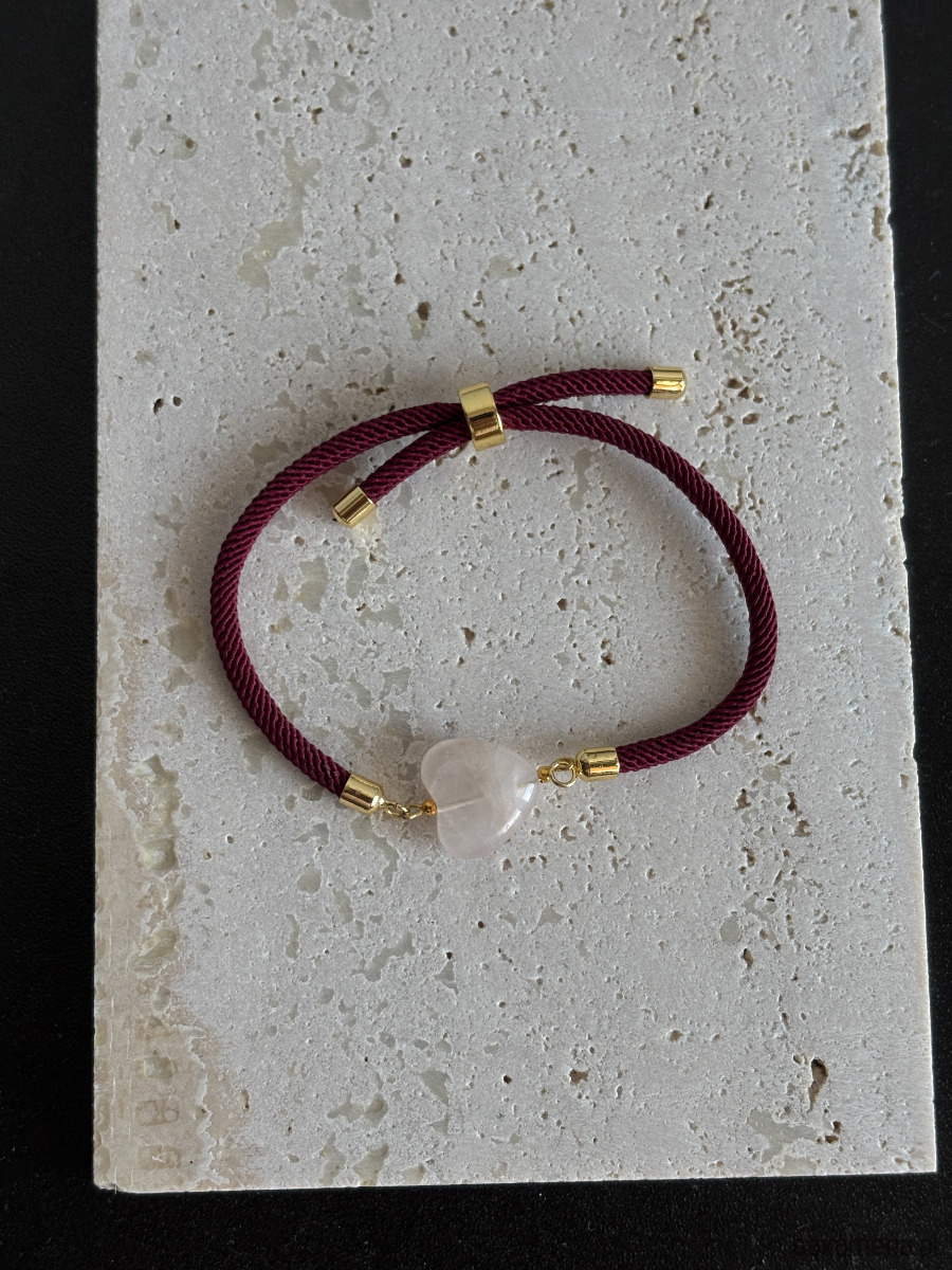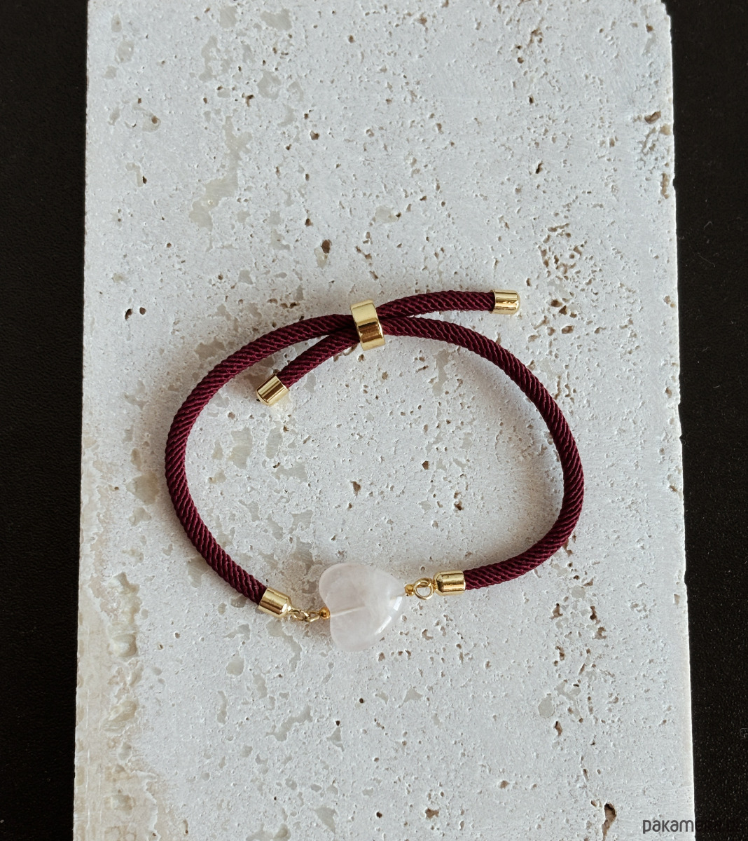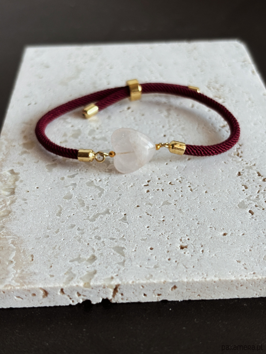 Bransoletka wykonana jest na regulowanym sznurku, ze złotymi elementami i sercem z jadeitu naturalnego.