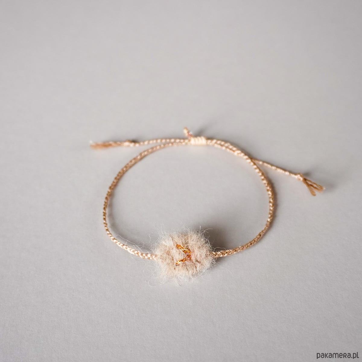 Bransoletka na sznurku z tkanym ręcznie elementem
