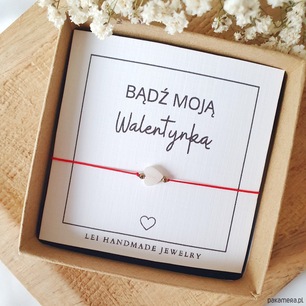 Bransoletka na NA WALENTYNKI wykonana ręcznie z kamieni naturalnych serduszka z MASY PERŁOWEJ i HEMATYTU na subtelnej nici jubilerskiej w kolorze czerwonym.