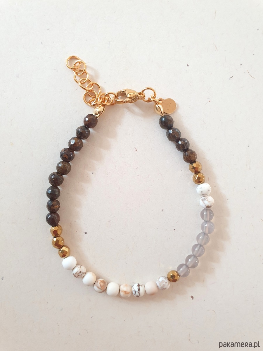 Bransoletka NEO bronzyt, kwarc dymny, howlit