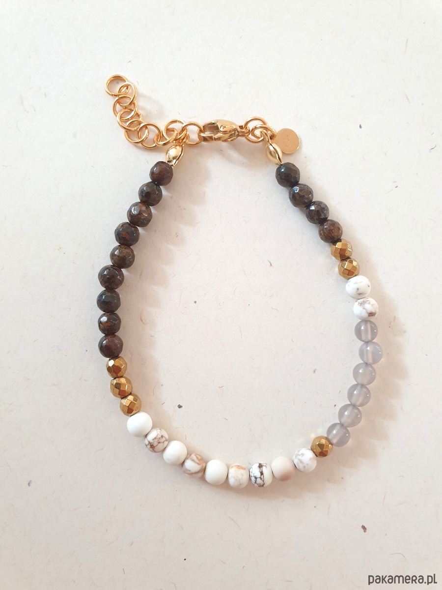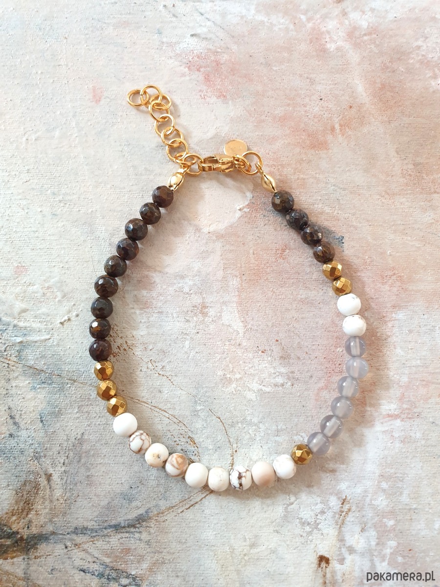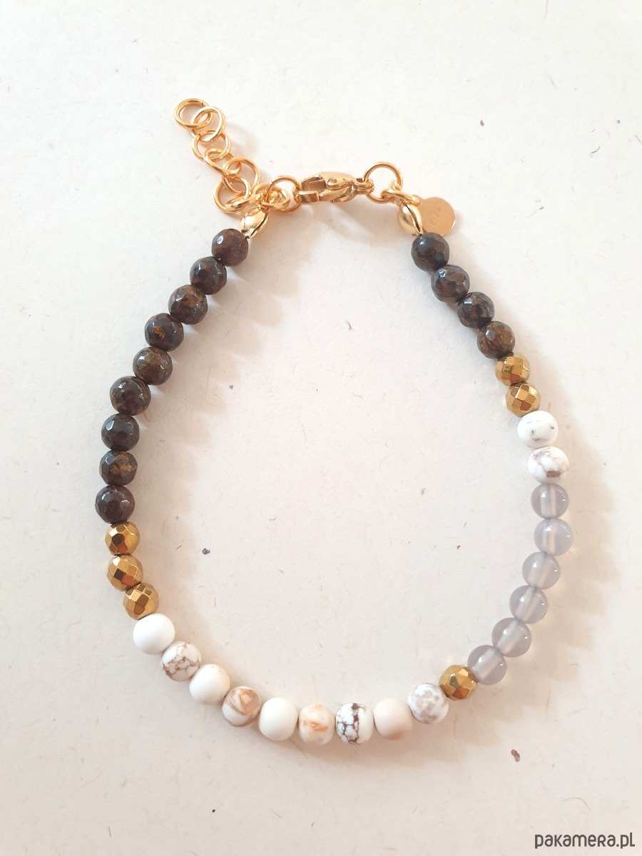 Bransoletka NEO bronzyt, kwarc dymny, howlit
