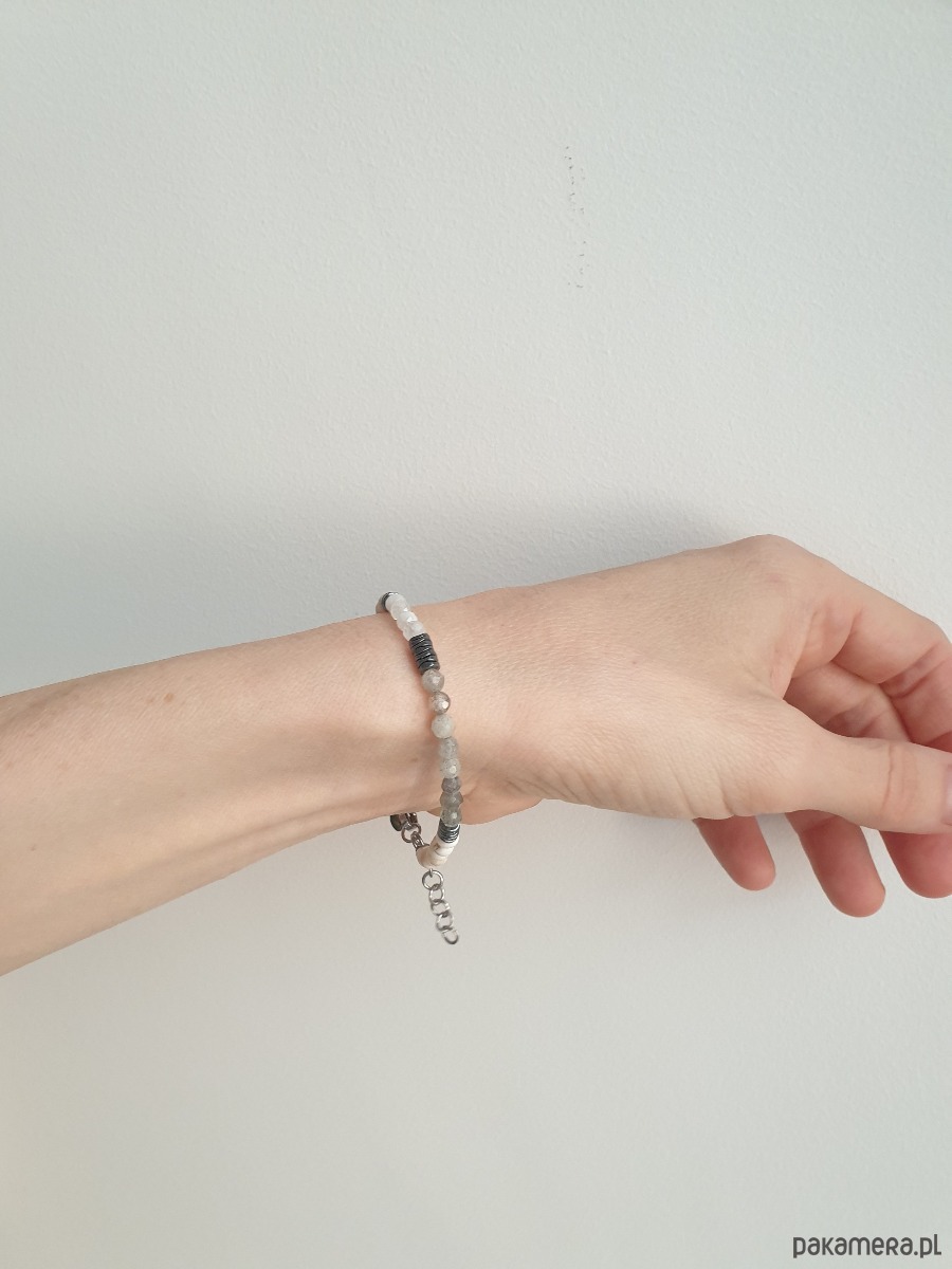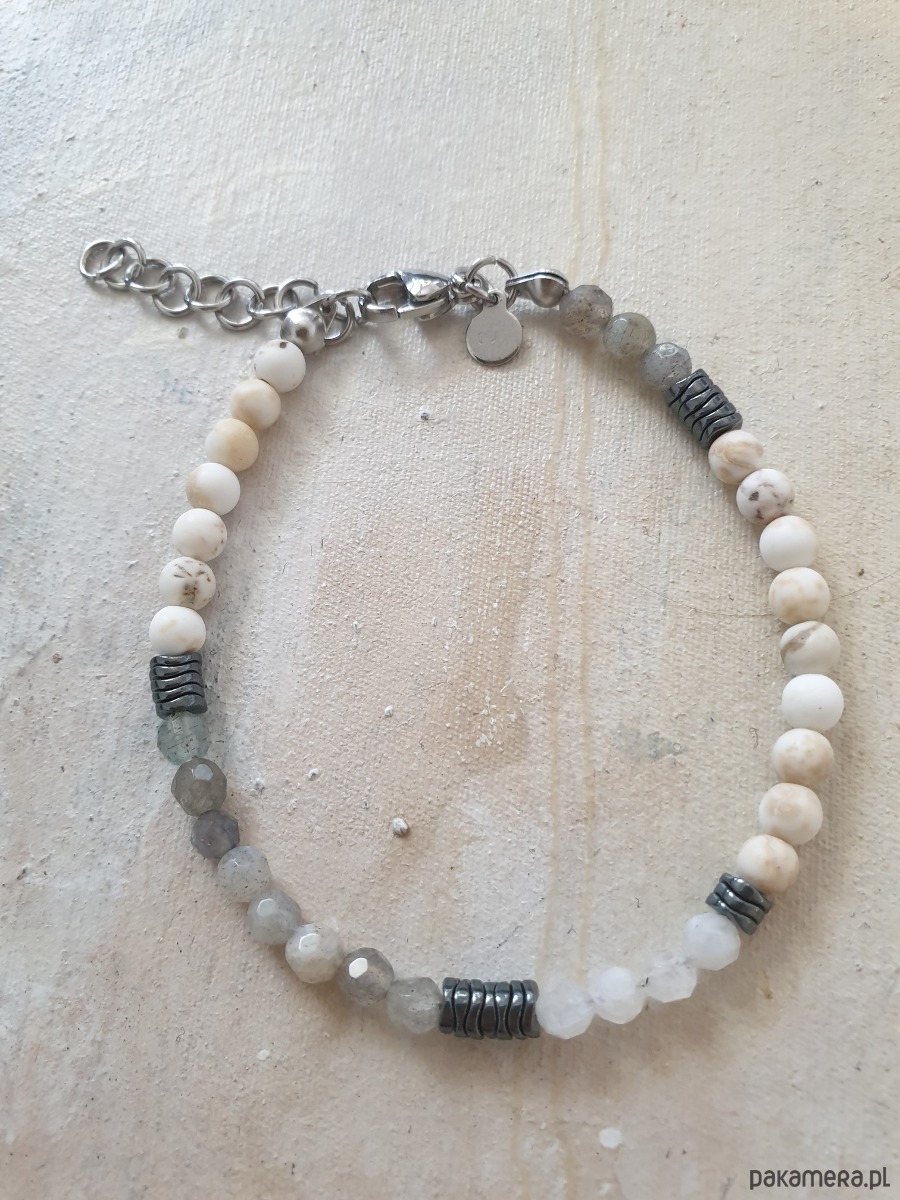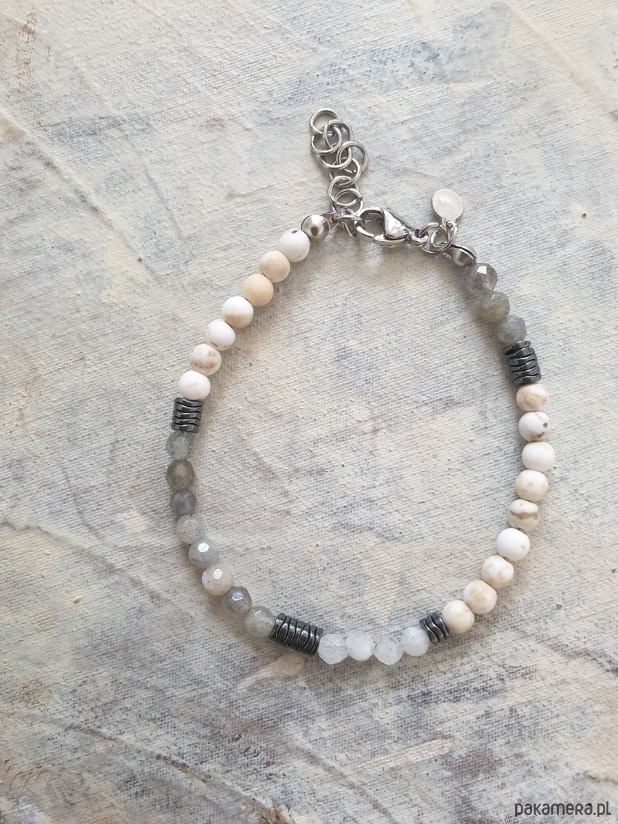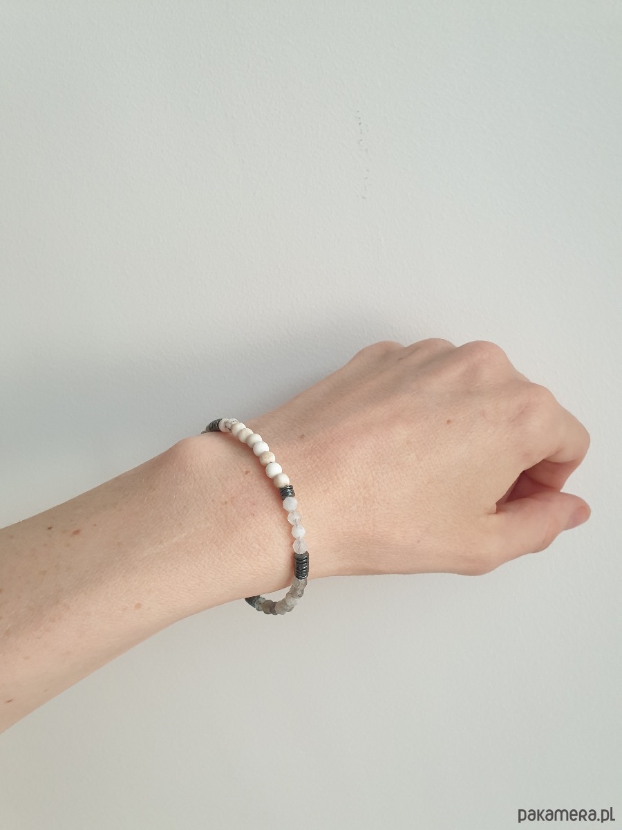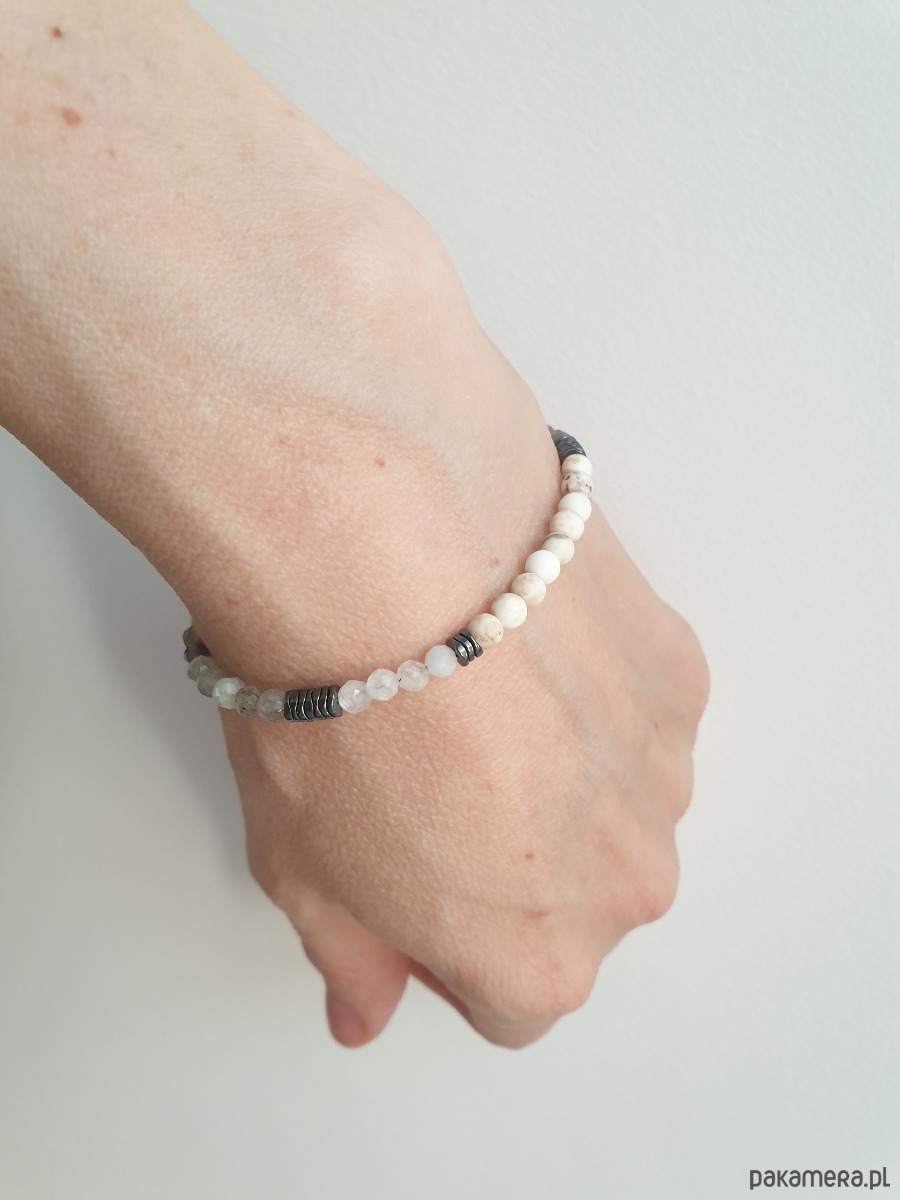Bransoletka NEO howlit, labradoryt, kamień księżycowy, hematyt