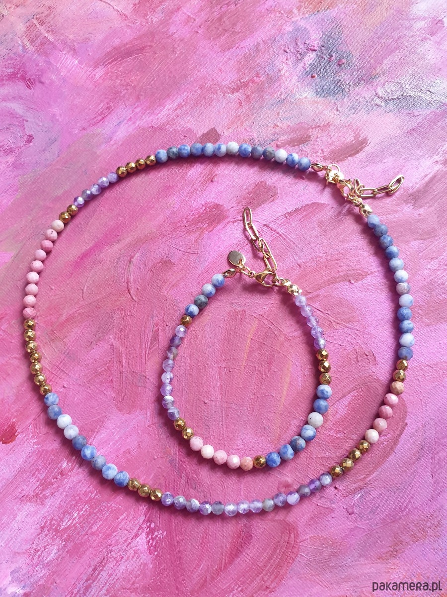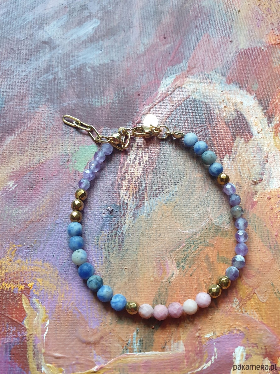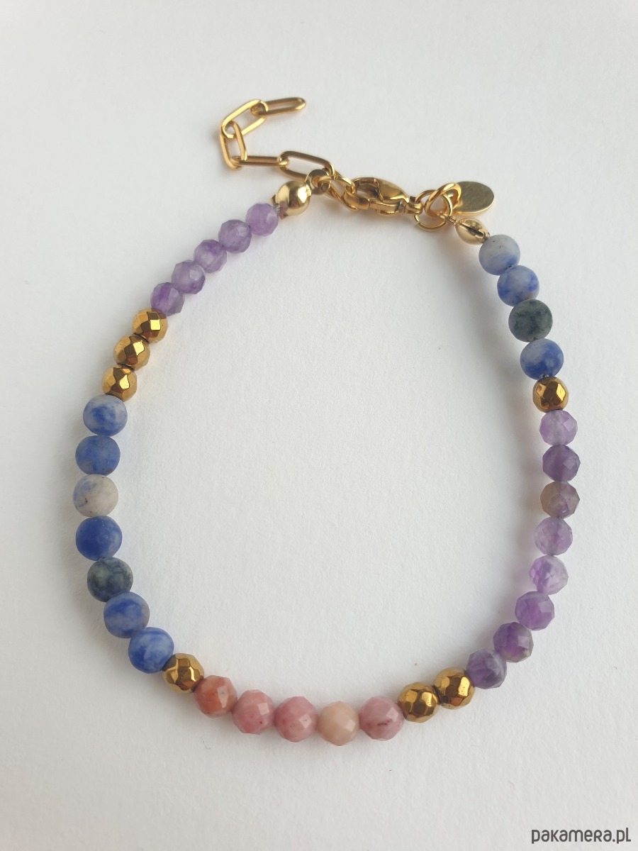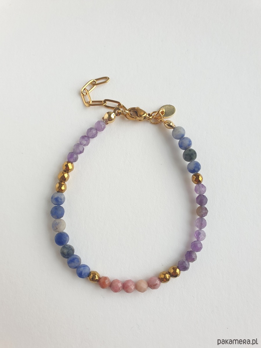 W tej - kulka złoty hematyt, rodonit, ametyst, jaspis niebieski