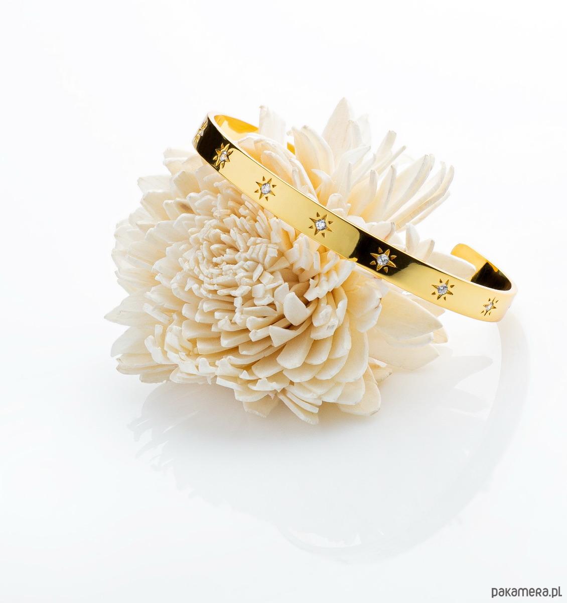 Bransoletka obręcz z gwiazdkami i cyrkoniami - srebro 925 pozłacane: