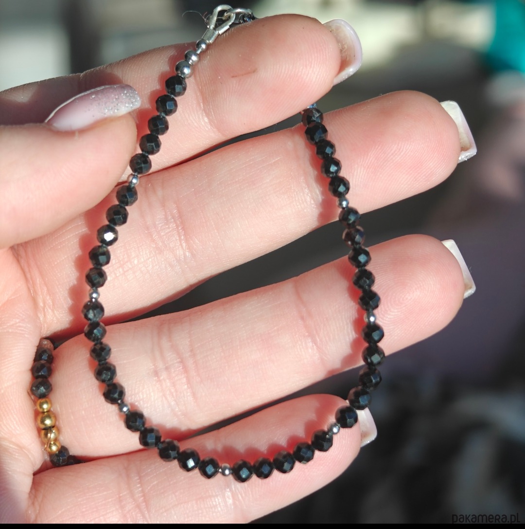 Bransoletka o długości 17 cm z dodatkową regulacją 1 cm, wykonana z naturalnego turmalinu. Całość uzupełniają przekładki ze stali chirurgicznej oraz drobne elementy ze srebra pozłacanego, które nadają biżuterii elegancki i subtelny charakter. Minimalistyczna forma sprawia, że bransoletka doskonale sprawdzi się zarówno na co dzień, jak i jako delikatny akcent do bardziej eleganckich stylizacji.