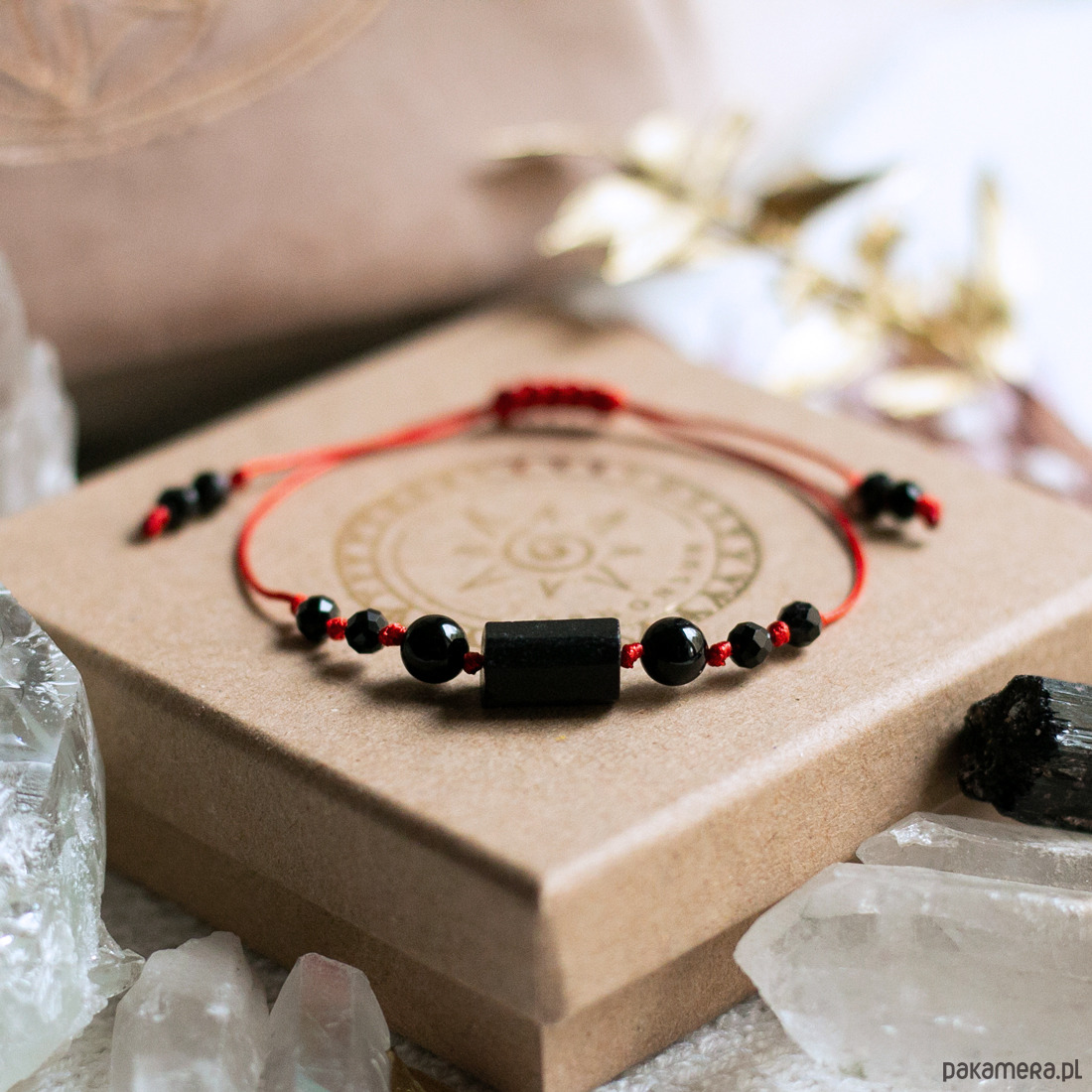 Bransoletka Ochronna zaplatana z intencją całkowitej ochrony energetycznej i fizycznej. Kamienie: Turmalin - chroni przed zazdrością i zawiścią, odbija i neutralizuje złe energie, dodaje odwagi. Czerwony sznurek czyli ochrona przed złym okiem.