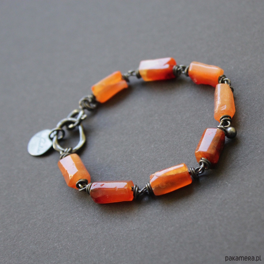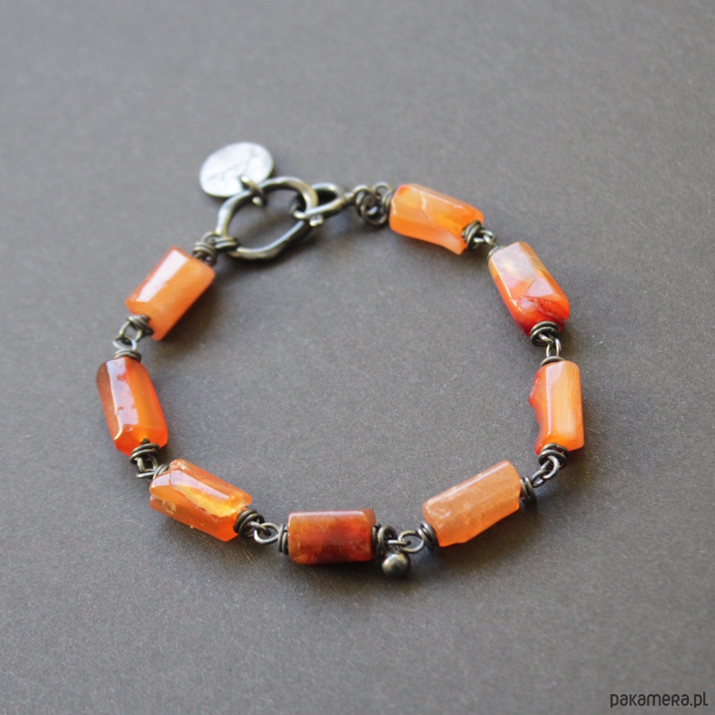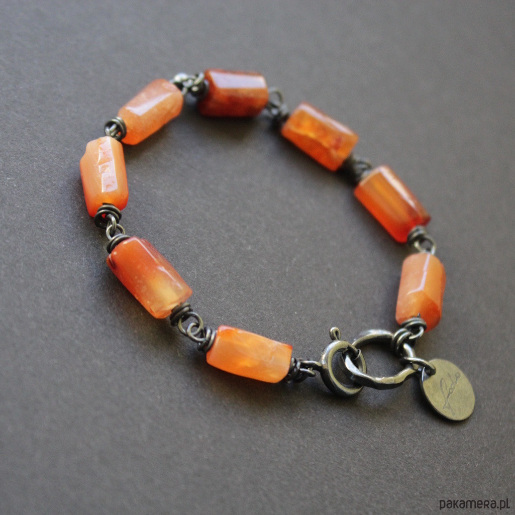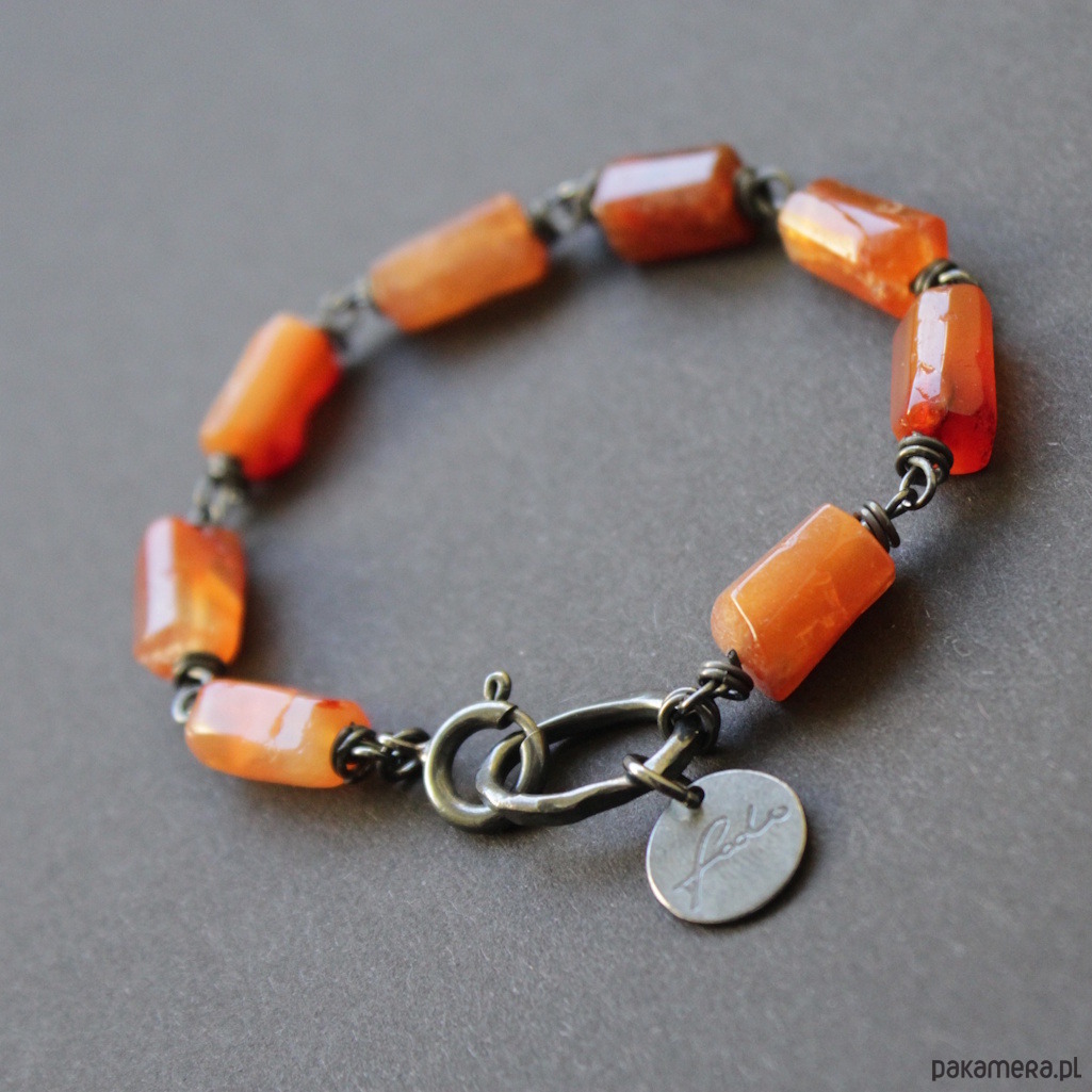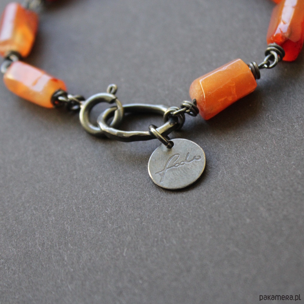 Bransoletka została wykonana z oksydowanego srebra próby 925 oraz niesamowitych karneoli wielkości 0,8-1,1 cm.