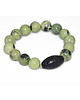 Urocza bransoletka z delikatnych oliwkowo zielonych kul z czarnymi refleksami. Ozdobiona owalnym kamieniem lawy i połyskującymi kuleczkami idealnie zdobi nadgarstek.