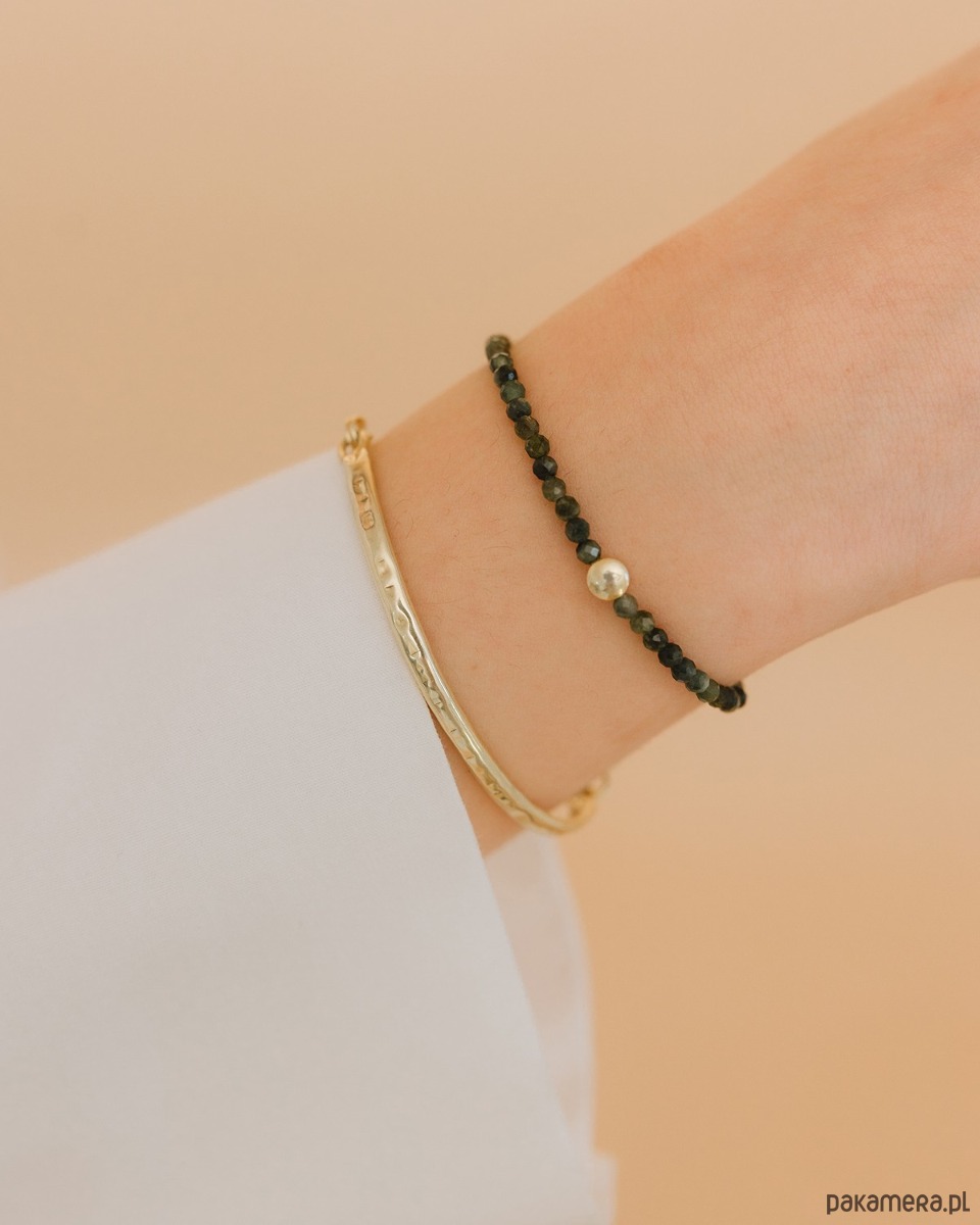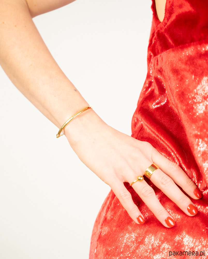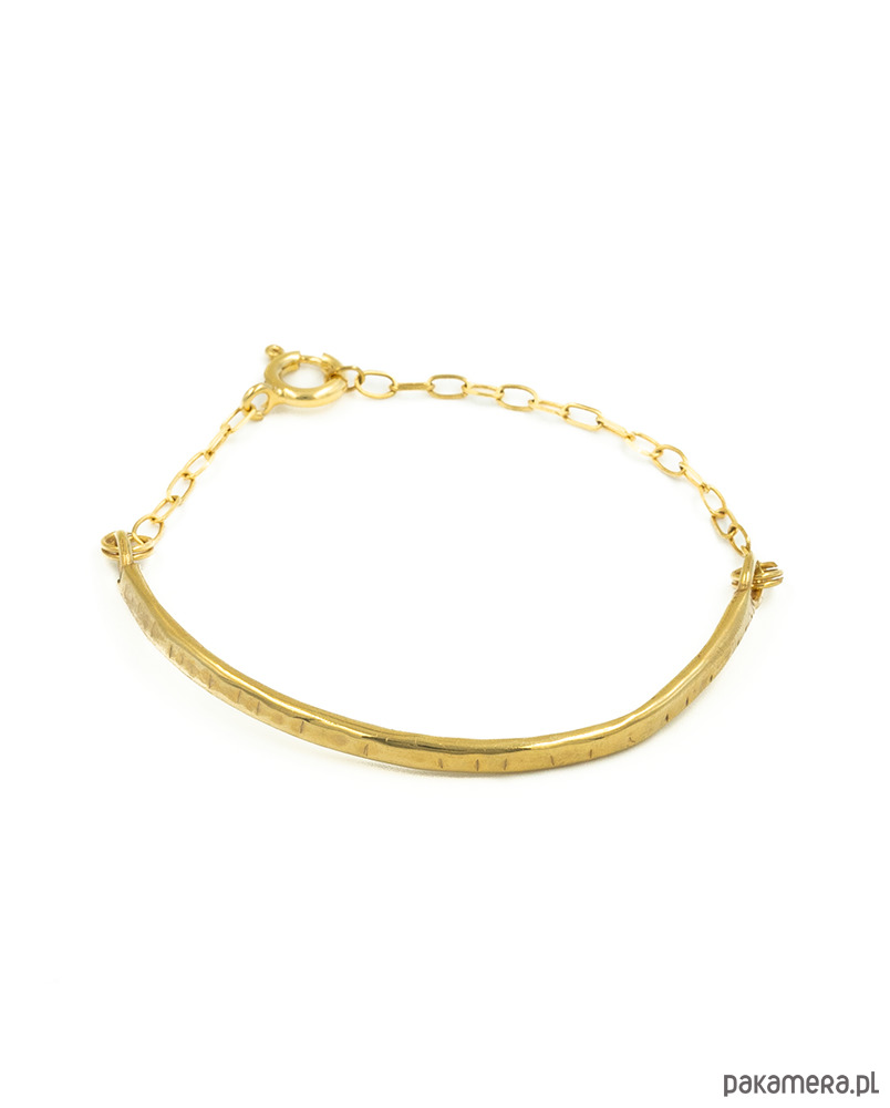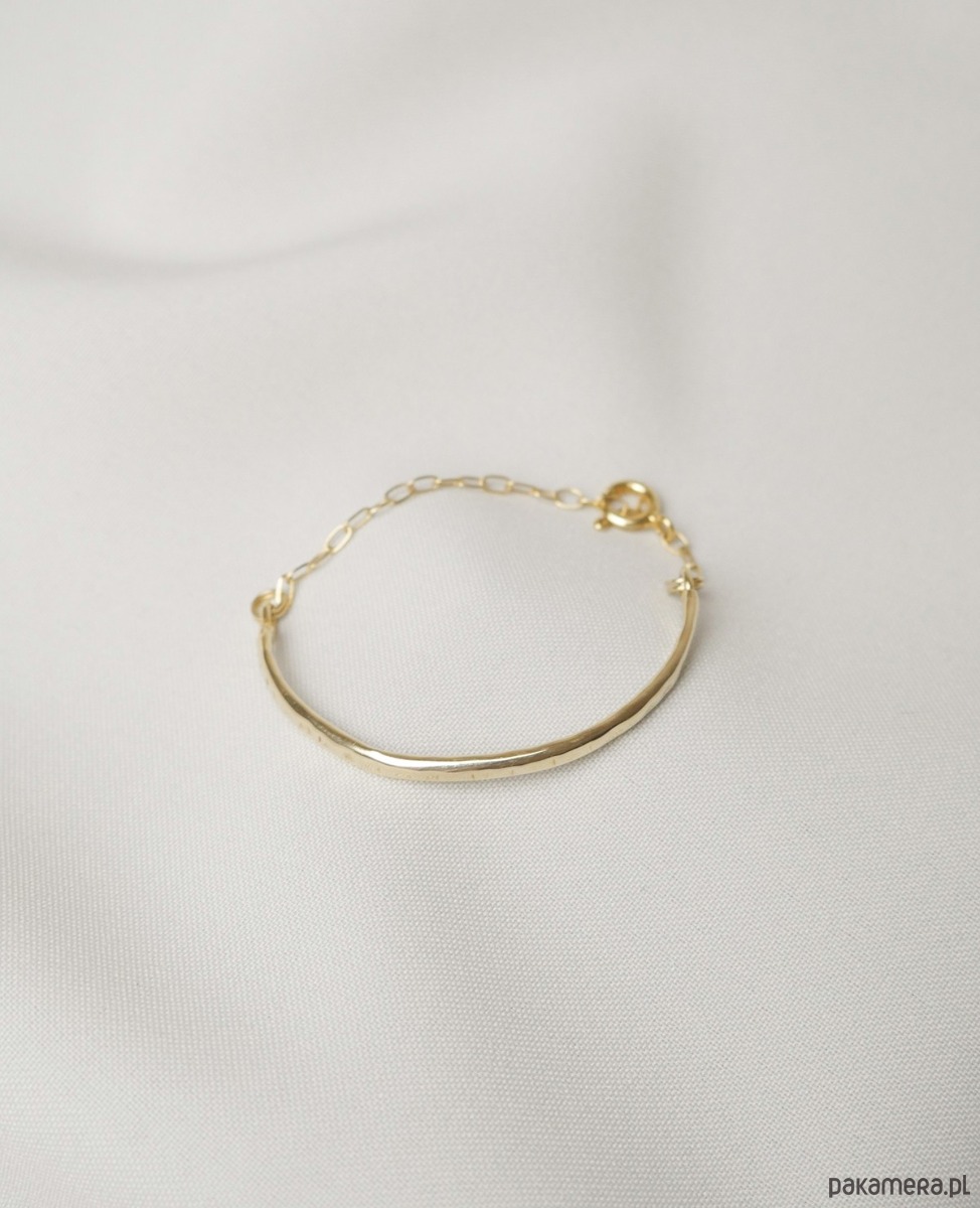 Delikatna bransoletka o lekko gniecionej fakturze, połączona z łańcuszkiem który umożliwia dopasowanie do obwodu nadgarstka. Całość wykonana ze srebra 925. Bransoletka dostępna w wersjach - srebrnej i złoconej 24k złotem.