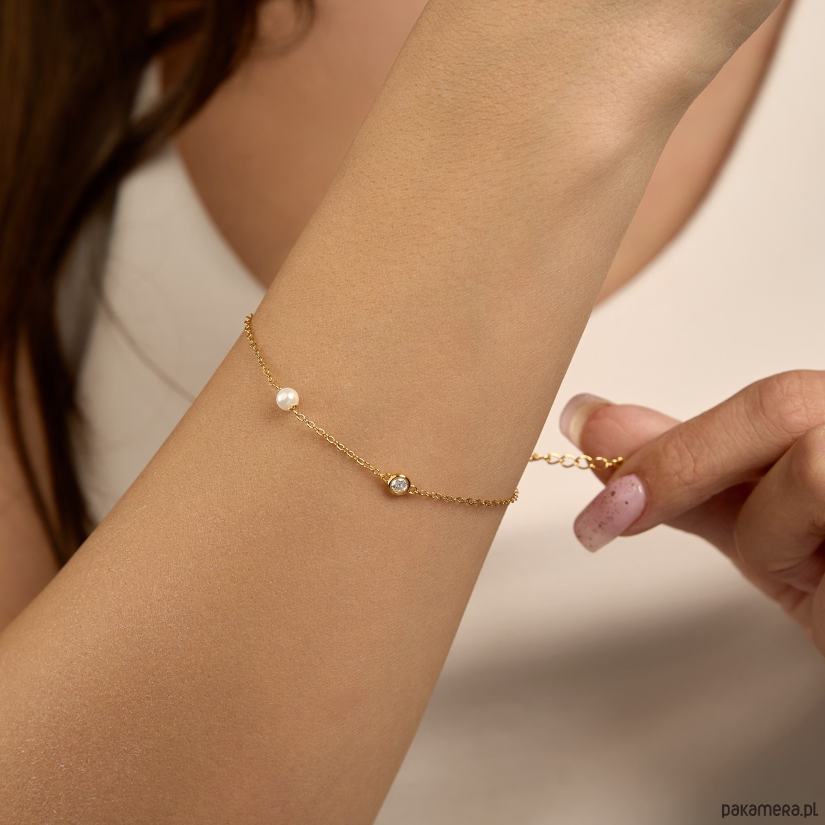 Bransoletka ozdobiona cyrkonami i perłami - srebro 925 pozłacane:
