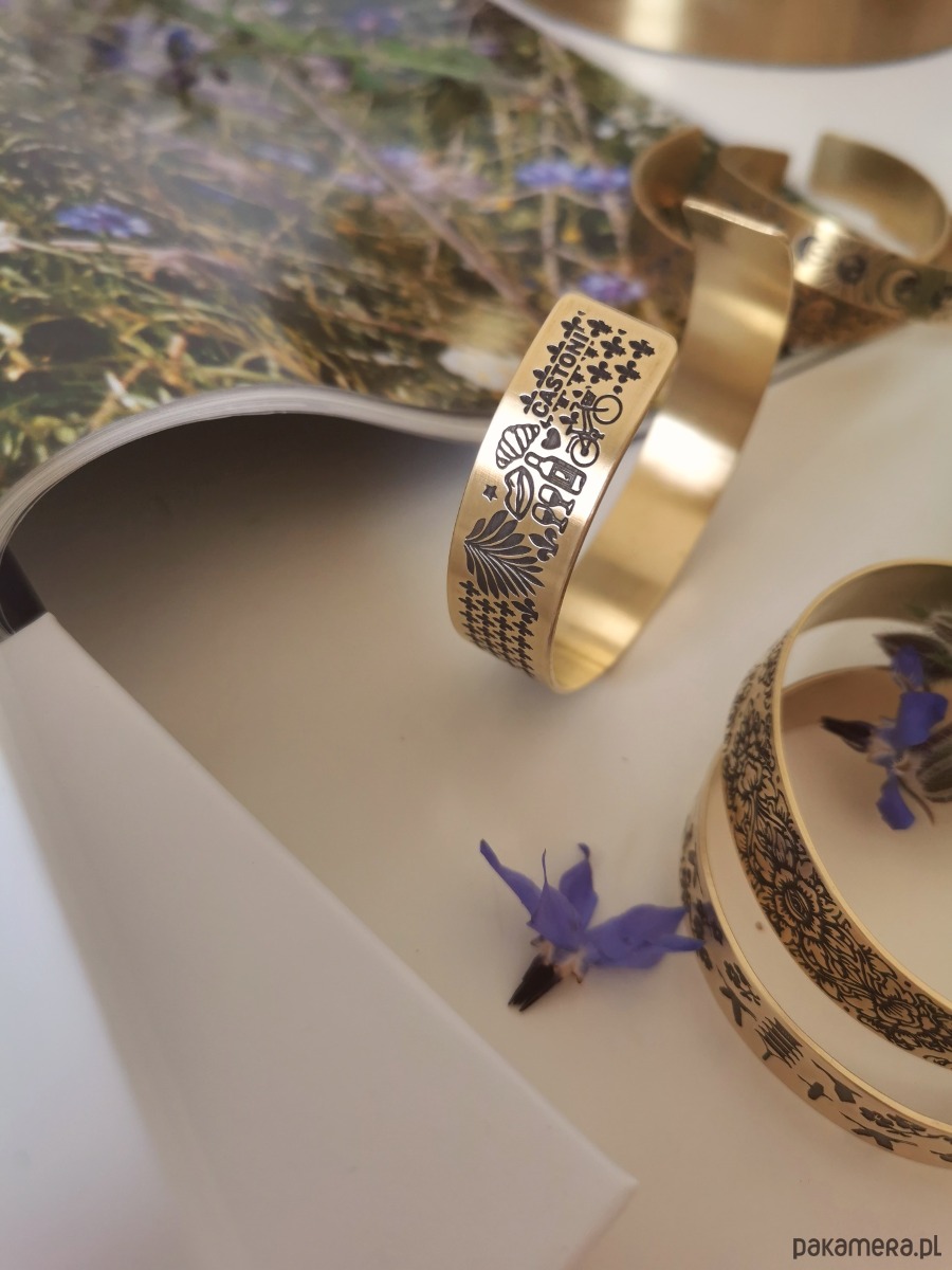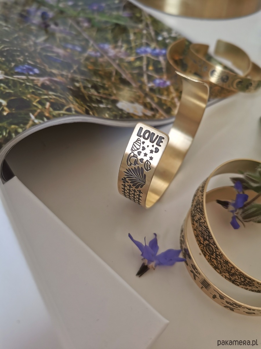 Nowa bransoletka ma kolor jasno złoty, wraz z upływem czasu mosiądz nabiera szlachetnej barwy starego złota.