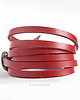 Prosta bransoletka skórzana w kolorze czerwonym, rzemyk o szerokości 5 mm - sześciokrotnie owija nadgarstek - zapięcie umozliwiajace regulację długości wykonane z metalu w kolorze antycznego srebra. Zapięcie sygnowane autorskim podpisem. (zaciskowa klamerka). Pasek pasuje do wszystkich rodzajów zegarków z mojej kolekcji. Wolny od niklu i ołowiu - antyalergiczny. copyright Ewa Saj. All Rights Reserved