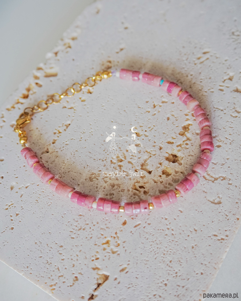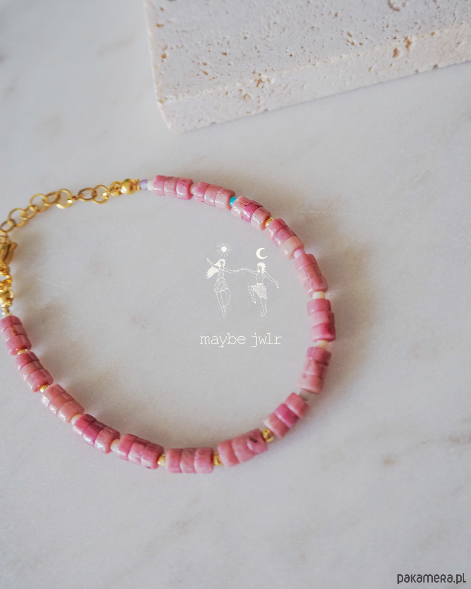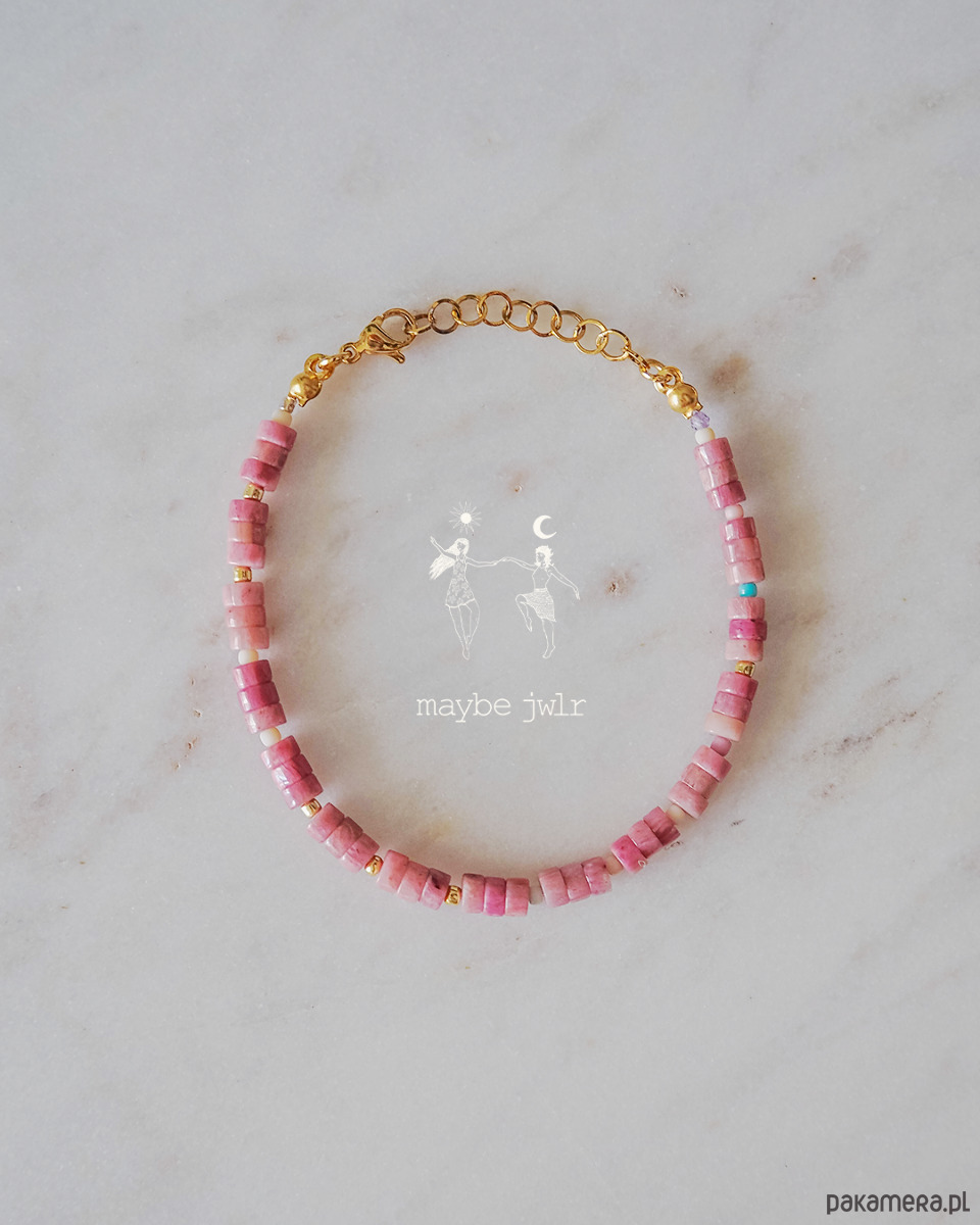 Bransoletka Passion jest zrobiona z kamieni naturalnych rodonit oraz szklanych koralików Toho.