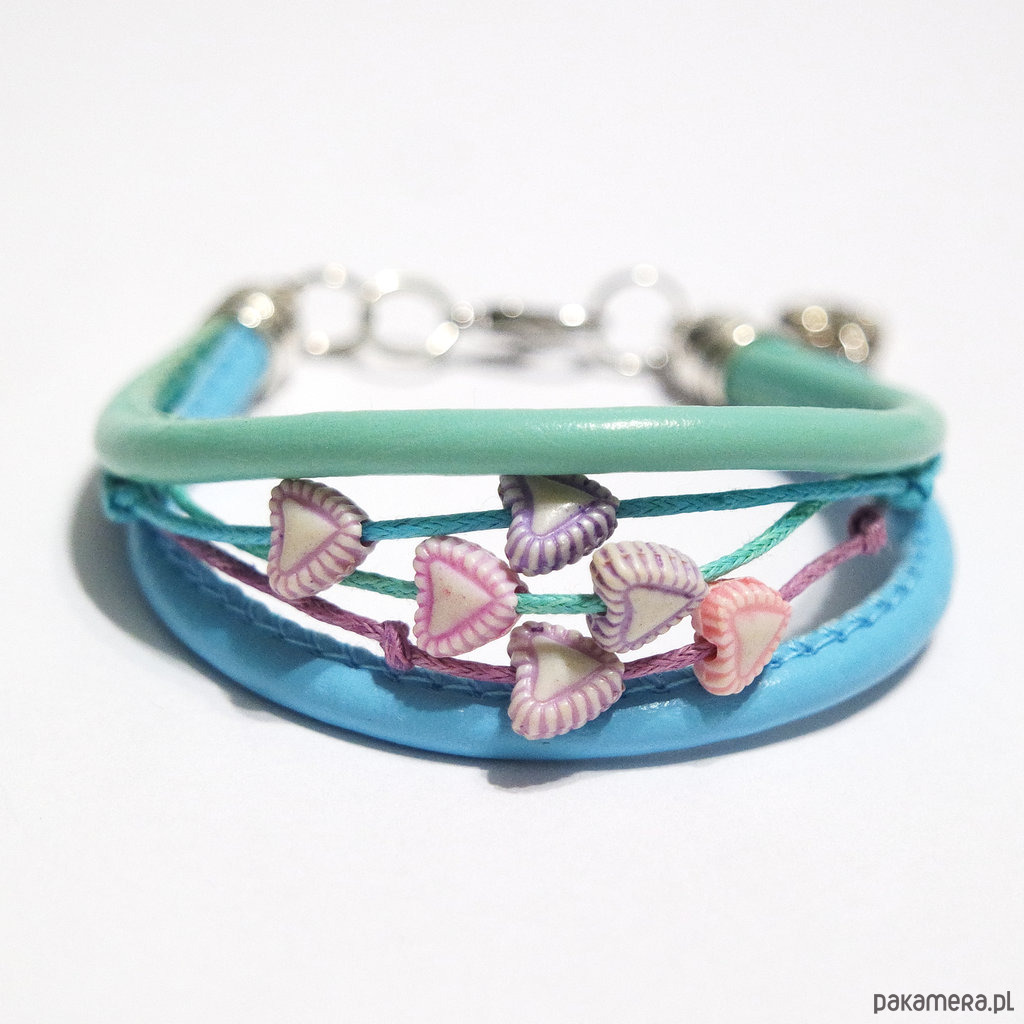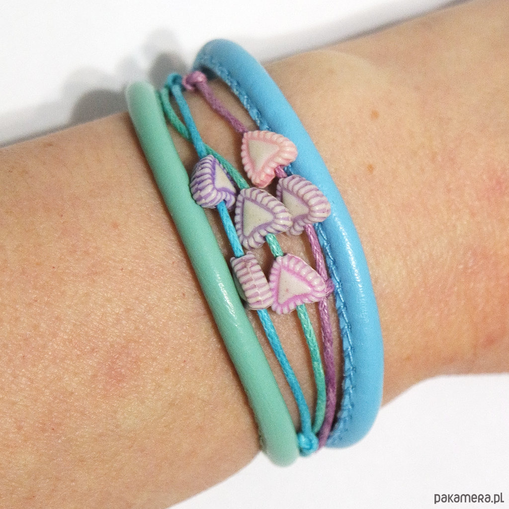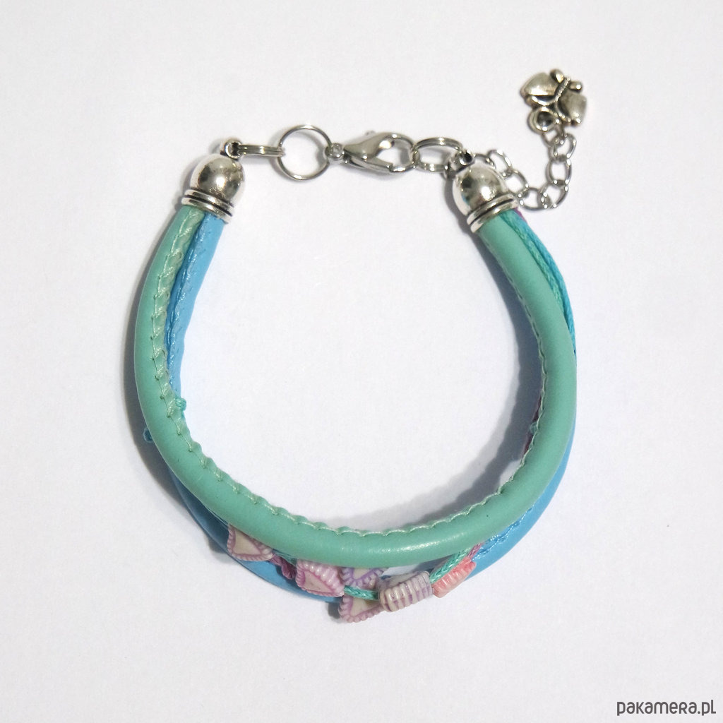 Bransoletka zrobiona jest z rzemieni z eko-skóry i sznurka.