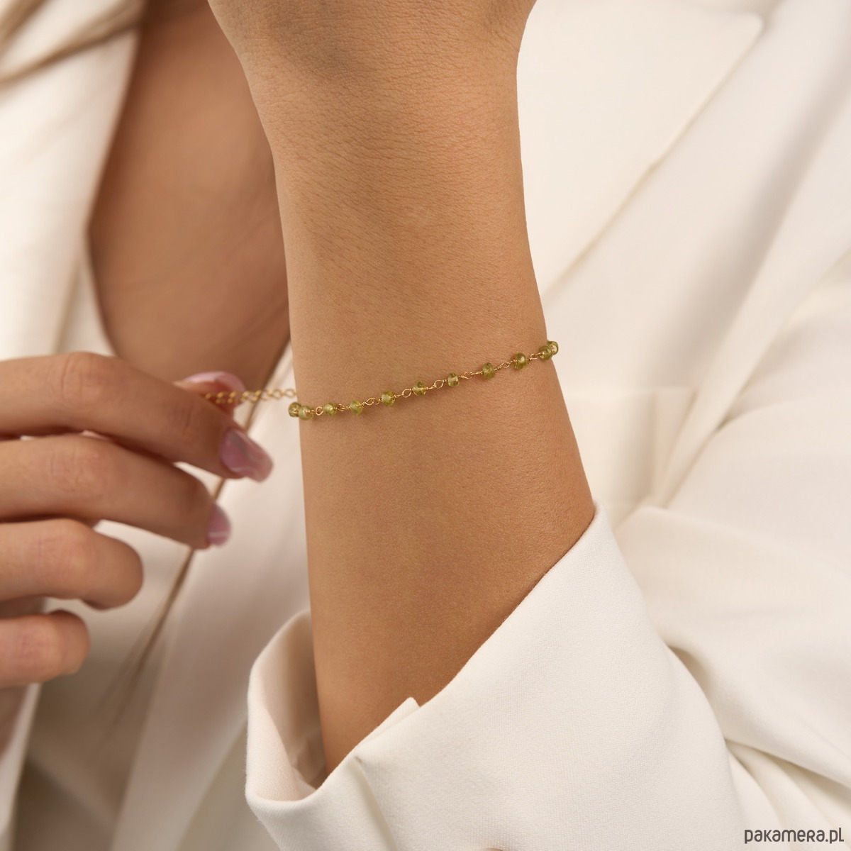 Ręcznie wykonana bransoletka - różaniec z peridotem - srebro 925 pozłacane:
