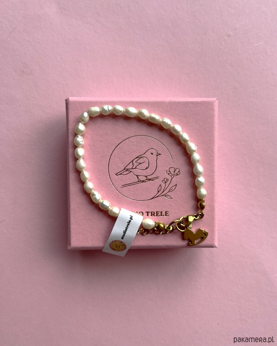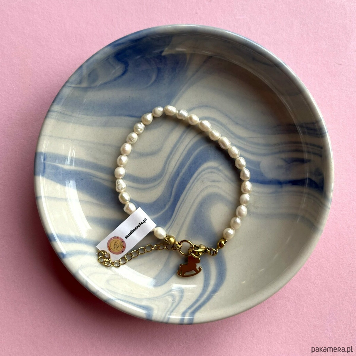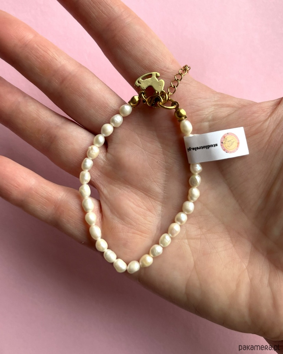 Bransoletka z pereł słodkowodnych z przepiękną zawieszką w kształcie konika na biegunach