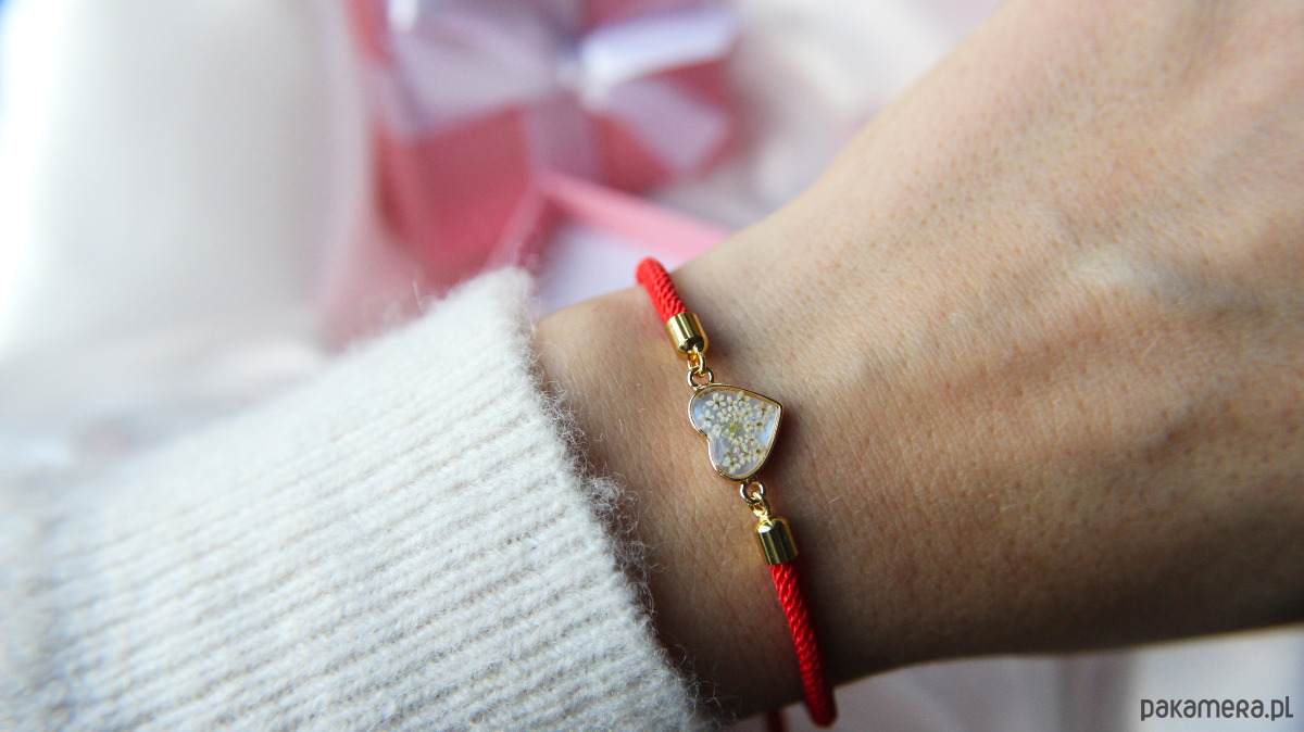 Ręcznie wykonana bransoletka z prawdziwych kwiatów i naturalnych elementów.