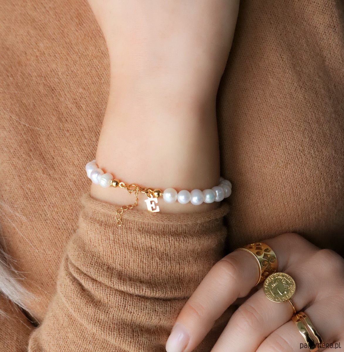 Bransoletka perły literka srebro 925 pozłacane